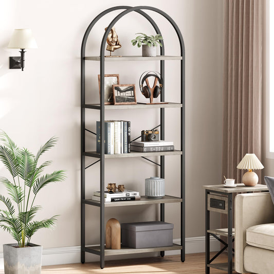 GAOMON Arched Bookshelf 5-Tier Open Shelves MDF & Metal Frame Curved Top Adjustable Feet Home Office Display Rack