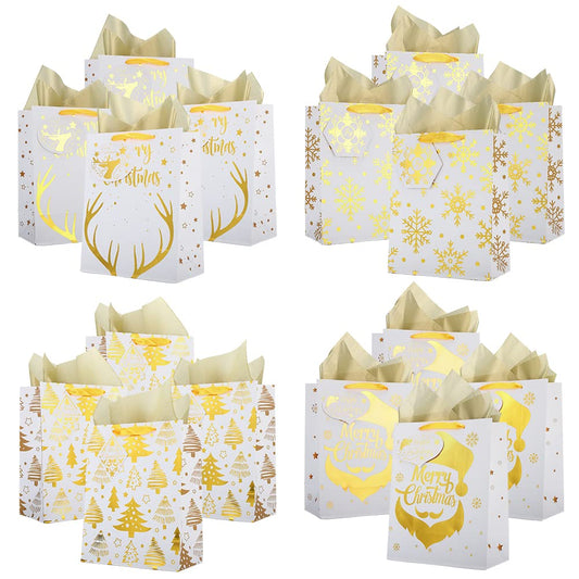 WHIZMAX 16 Pack Christmas Foil Gold Gift Bags Xmas Paper Bags