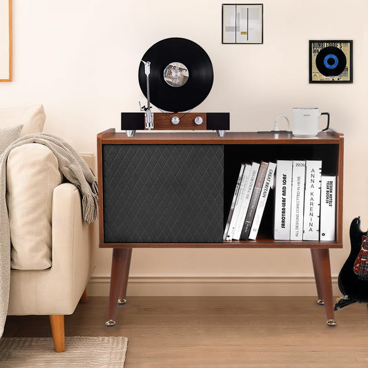 GAOMON Record Player Stand with Power Outlet, Vinyl Record Storage Cabinet, Turntable Stand, Large Vintage Record Player Table Holds up to 300 Albums, Vinyl Record Cabinet for Living Room,Bedroom