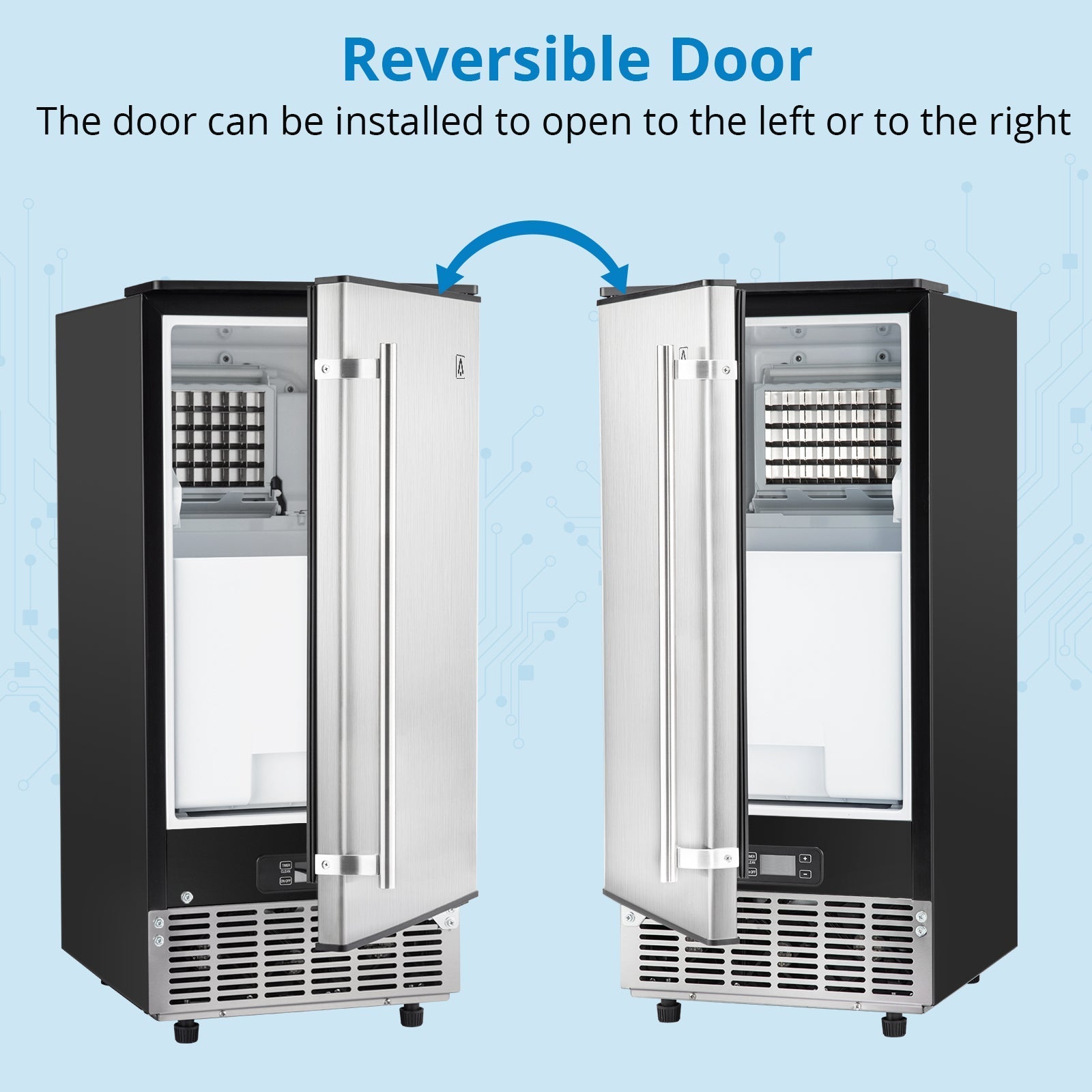 The door of the freestanding ice maker can be installed either to the left or to the right, so you can choose the opening direction based on your habits. Also, the ice storage basket is removable so that you can take a full basket of ice directly from the ice machine to your party.