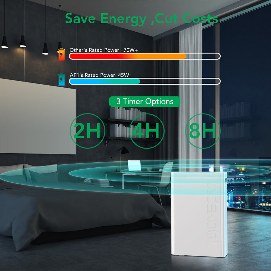 3 Fan Modes & 3 Time Settings Adjust the fan speed mode (Sleep/Low/Med/High) to capture as much air pollutants as required. Timer options (2H/4H/8H) allow you set the air purifier operating time whenever you like. |