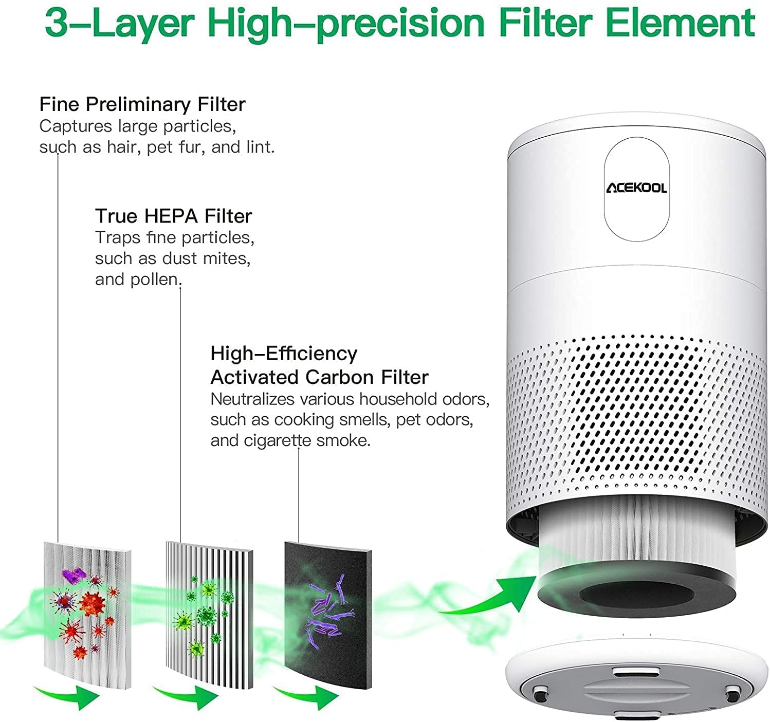 ACEKOOL Air Purifier D02 H13 HEPA Filter Smart Mode Air Purifier EU Plug for Home Large Room with Auto Mode, PM2.5 Indicator Smart Air Quality Check