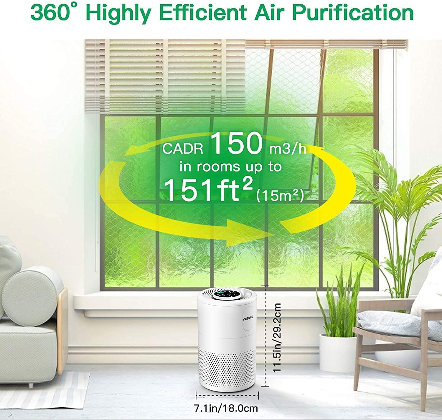 3 fan speeds & sleep mode Air purifier 3 types of speed settings (low, medium and high) on the screen offer you different options. Temperature and humidity are displayed on the screen of the air purifier. In sleep mode, the most suitable temperature and humidity are 16-26¡ãC and 40-60% and the noise is only 25dB. |
