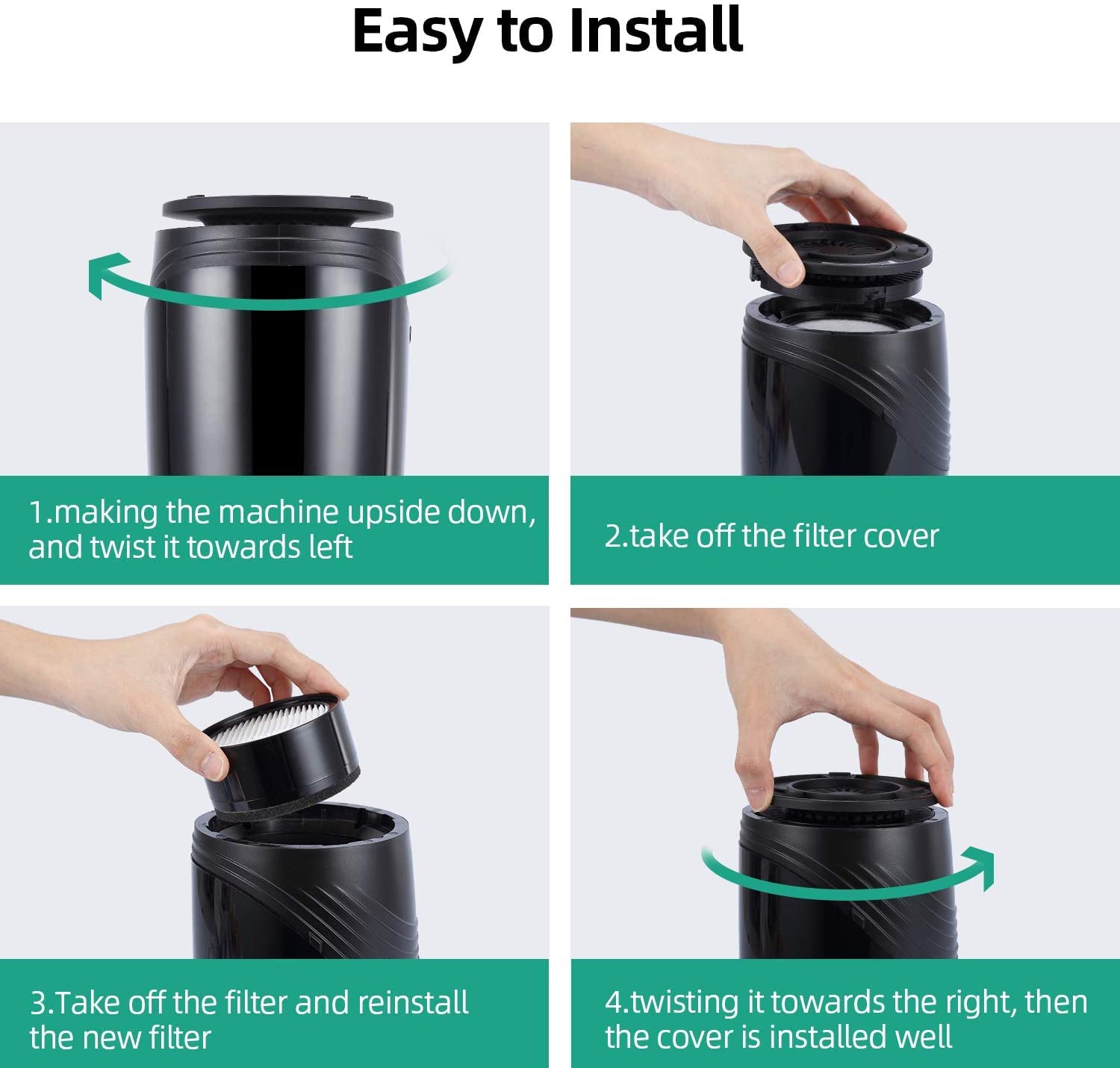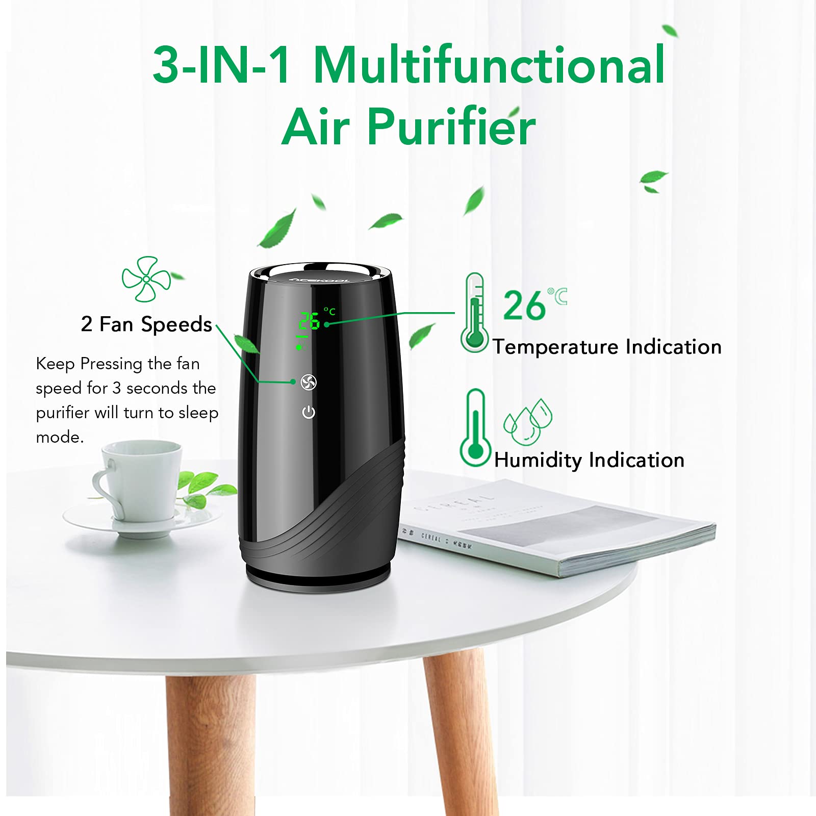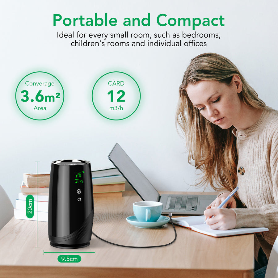 Compact but Powerful Its small size and modern design make it easy to fit in any small areas or rooms, and powerful enough to deliver clean air 30-65m3/h, which covers the area of about 10 square meters. No ozone and UV-C light. |