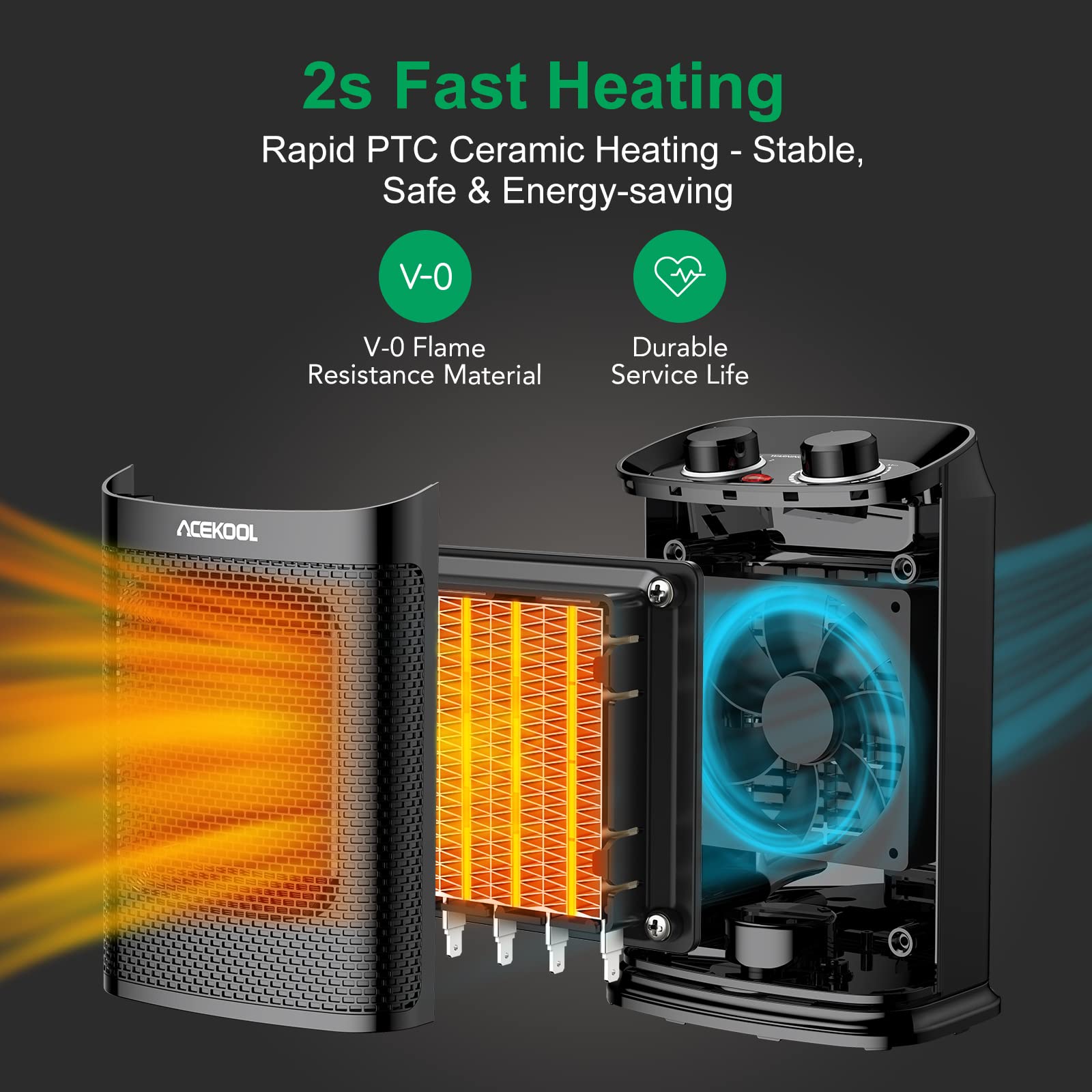 ACEKOOL Space Heater HD1 Portable 3 Modes Ceramic Fan Heater