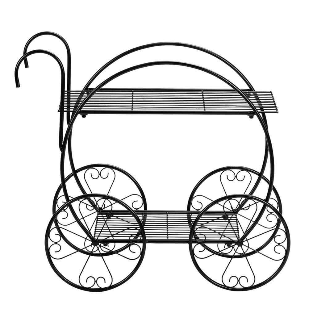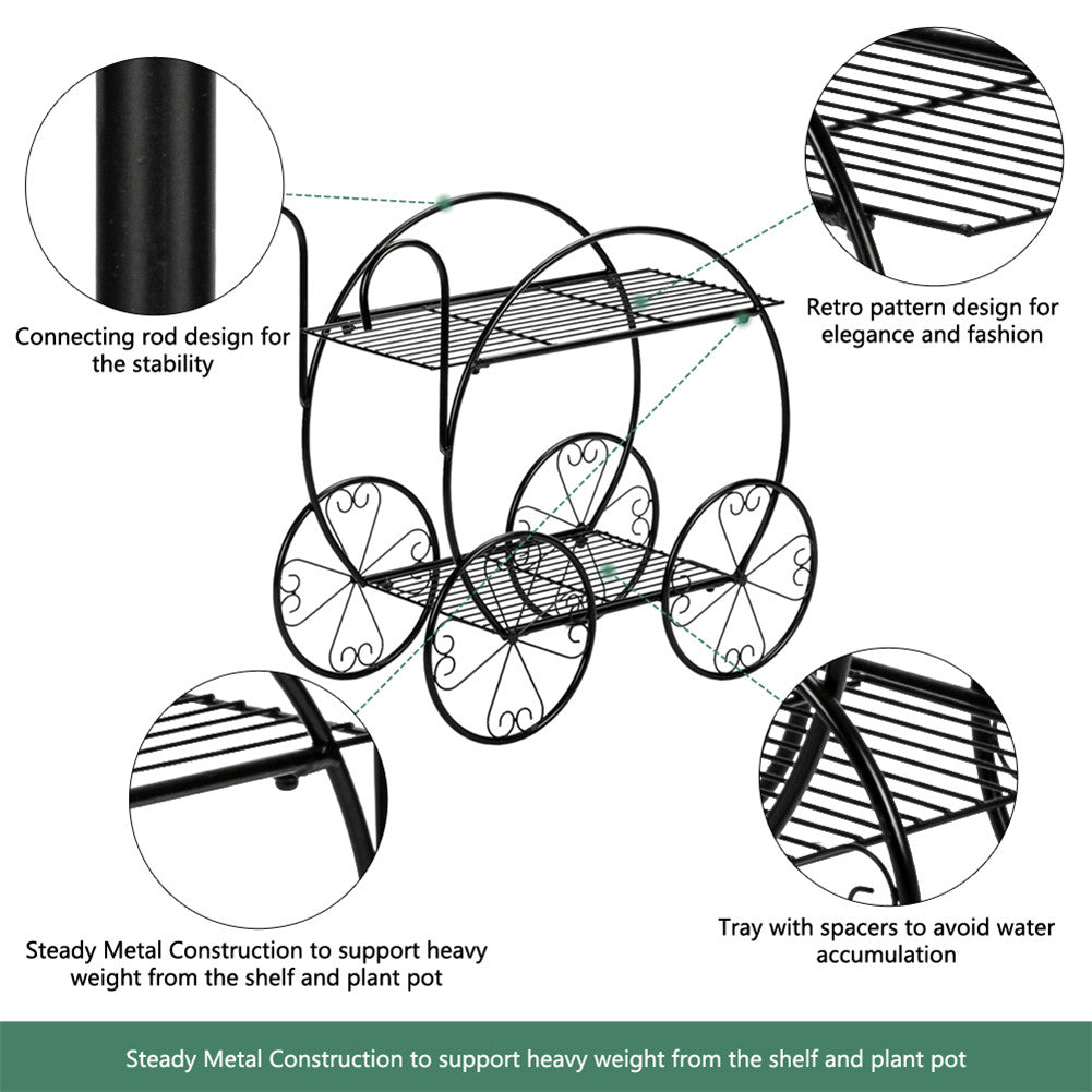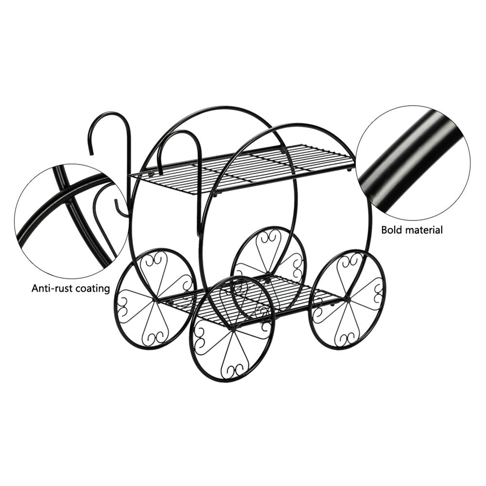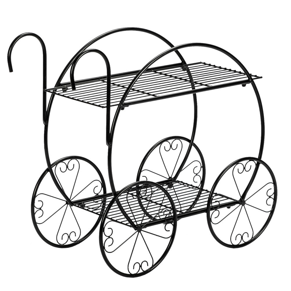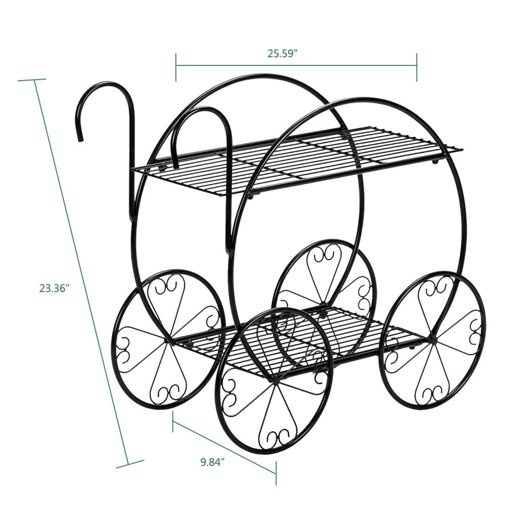 ALICIAN 2-Tier Flower Pot Stand Garden Cart Design Plant Holder Black