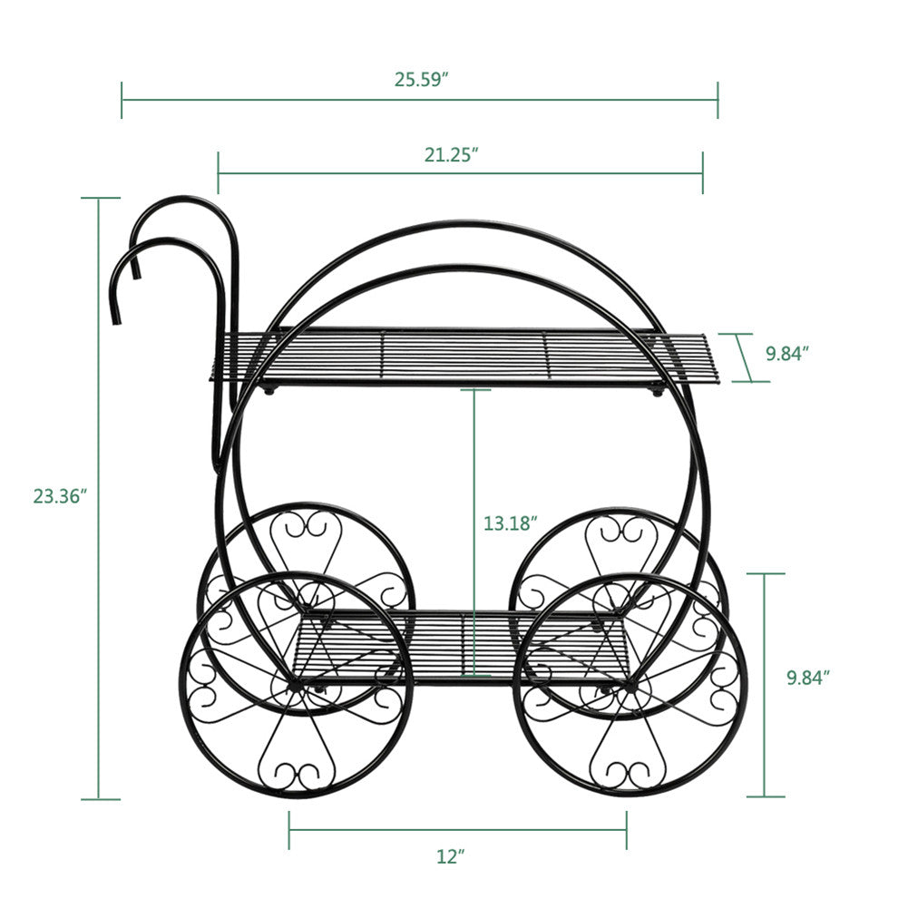 It is attractive and nice-looking two-tiered flower pot stand which will enhance level and improve style of your room or yard. There are two tiers for displaying and classifying flowers, plants, and assorted greenery beautifully on this garden cart. In addition to displaying plant pot, you can also put your garden tools, books or other things on it, which also provides much more additional space for you. The whole classic design makes it a great decorative artwork in your home, deck or patio! It will be worthy of your choice!