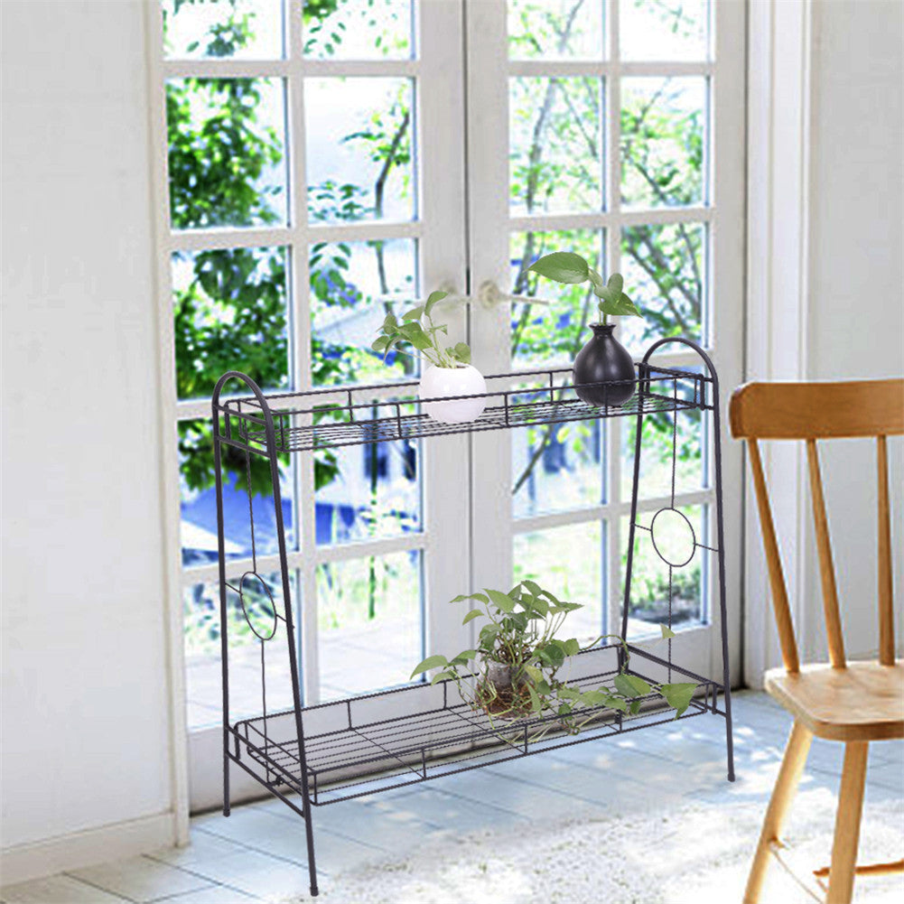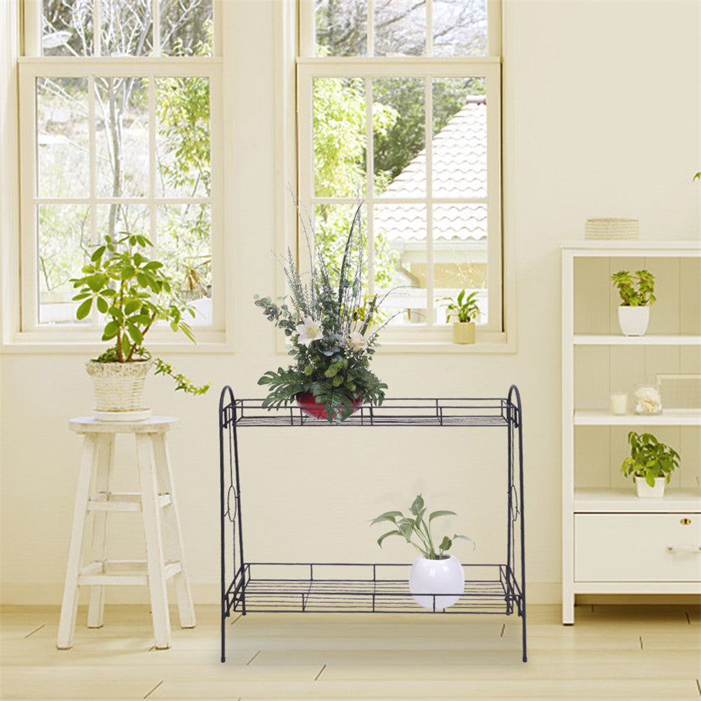 Do you like this brand new and high quality 2-tier standing plant shelf? 2 layers of round pattern plant shelf adopts contemporary tray adorn design,supports two or three plants per tier. powder coated finish will last for years. This plant pot stand is made of metal, which made it more durable. Exquisitely carved designs decorate your garden, pots and make people notice your flower. These attractive plant stands can be used on balconies, hallways, kitchens or bathrooms to decorate dull spaces. Beautiful things bring you good mood. What are you waiting for? It will not let you down.