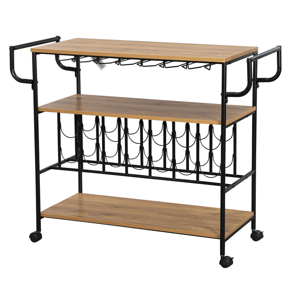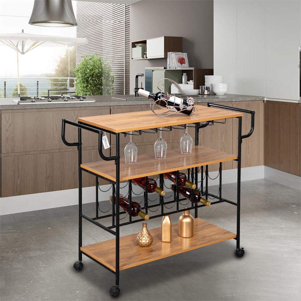 3 shelves: provide more space for trays, snacks and other small items. In addition, the kitchen cart built in with glass holders and wine racks.Crafted in metal frame construction for increased durability as well as ensure the shelves on this buffet cart: can hold a considerable amount of weight.
