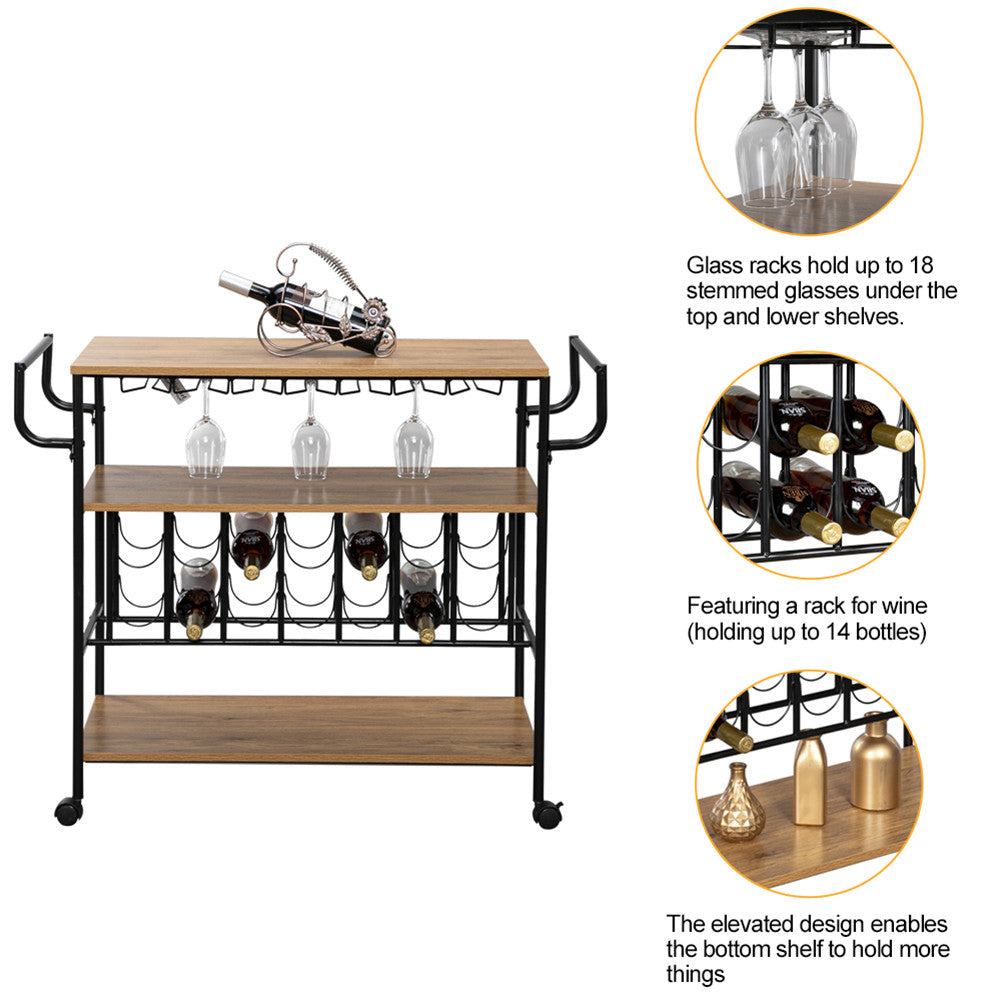 Industrial Wine Rack Cart Kitchen Rolling Storage Bar Wood Table Serving Trolley. Get this elegant Industrial Wine Rack Cart now and this will your party moving from the kitchen to the dining room. This wine cart equipped with 2 handle bars and 4 rolling casters (2 of them are lockable), make it easy to move.