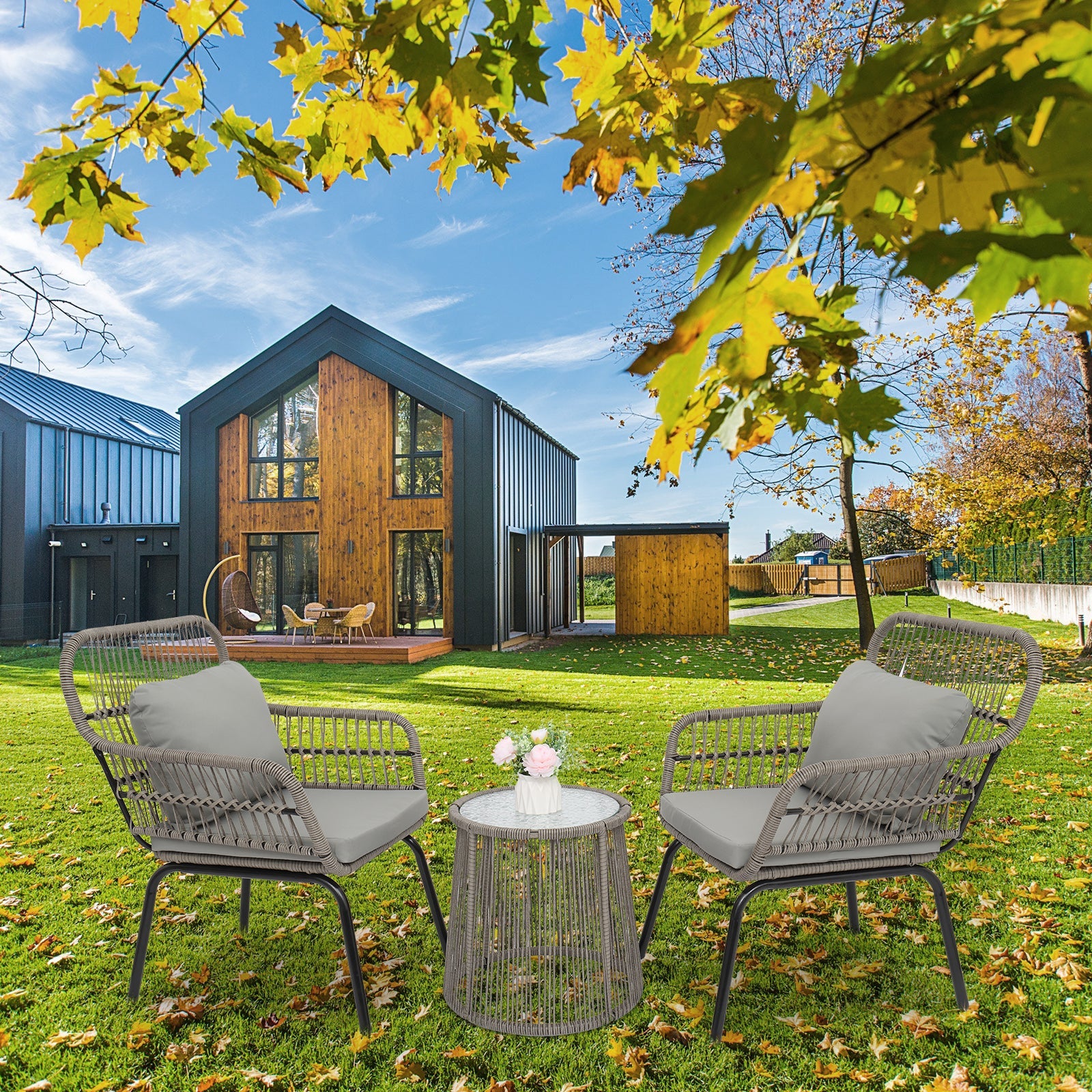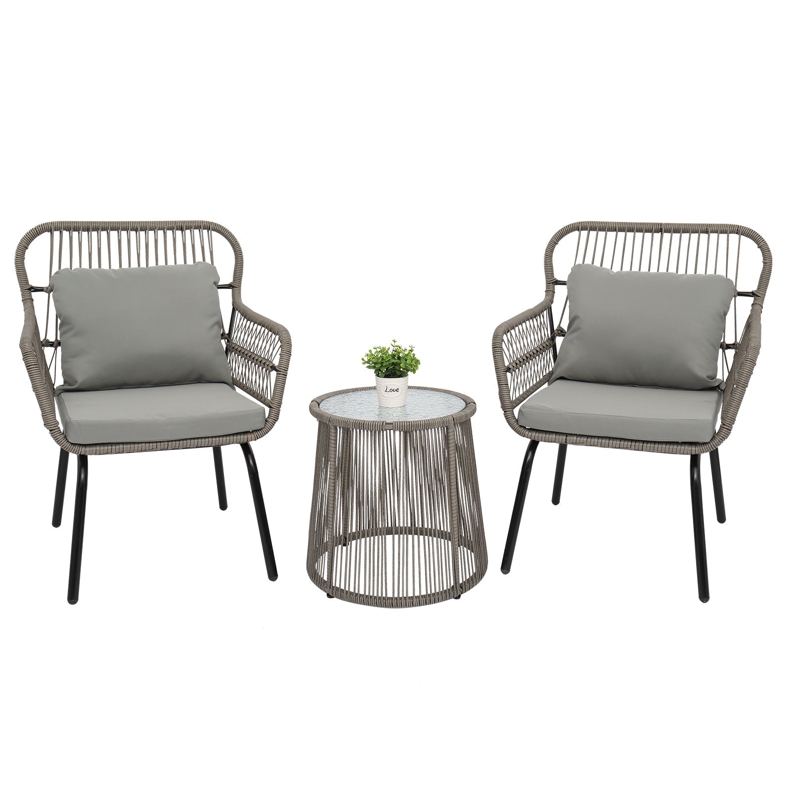 ALICIAN 3 Pcs/set Patio Table Chair Set Outdoor Single Chair + Coffee Table Grey