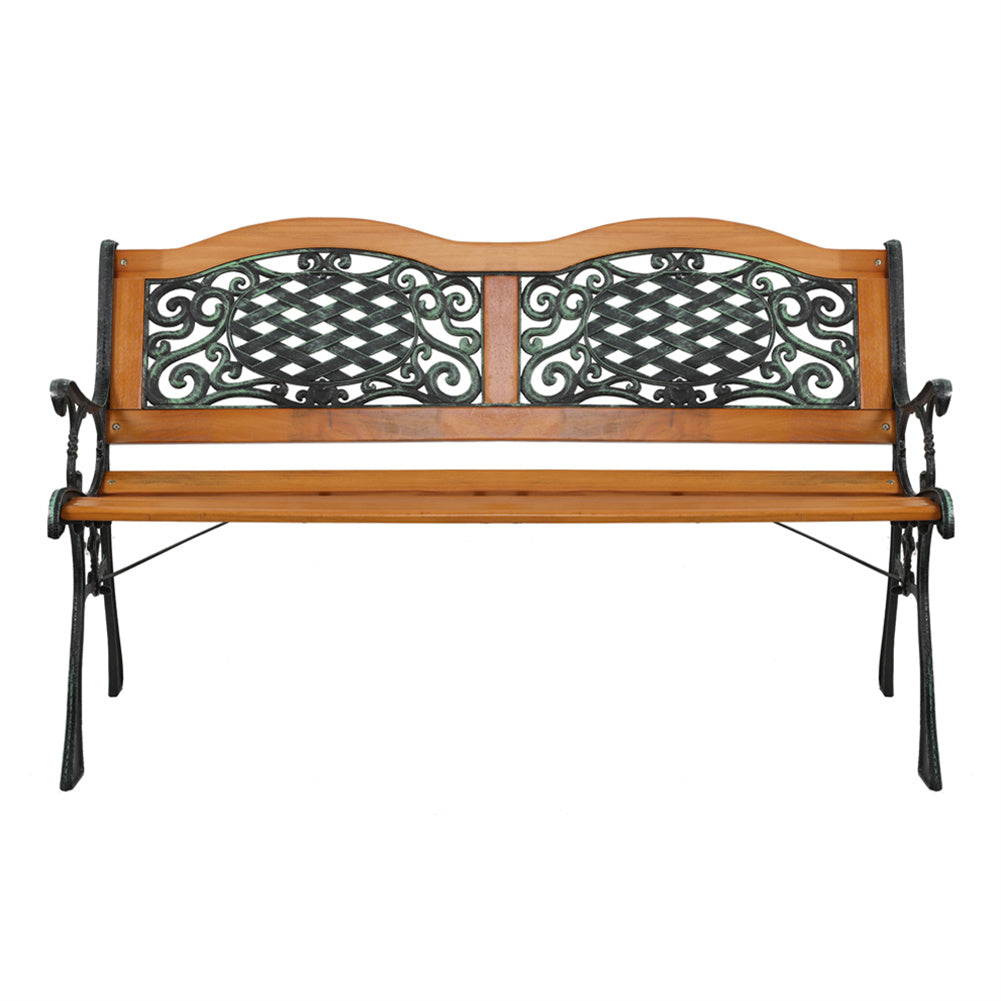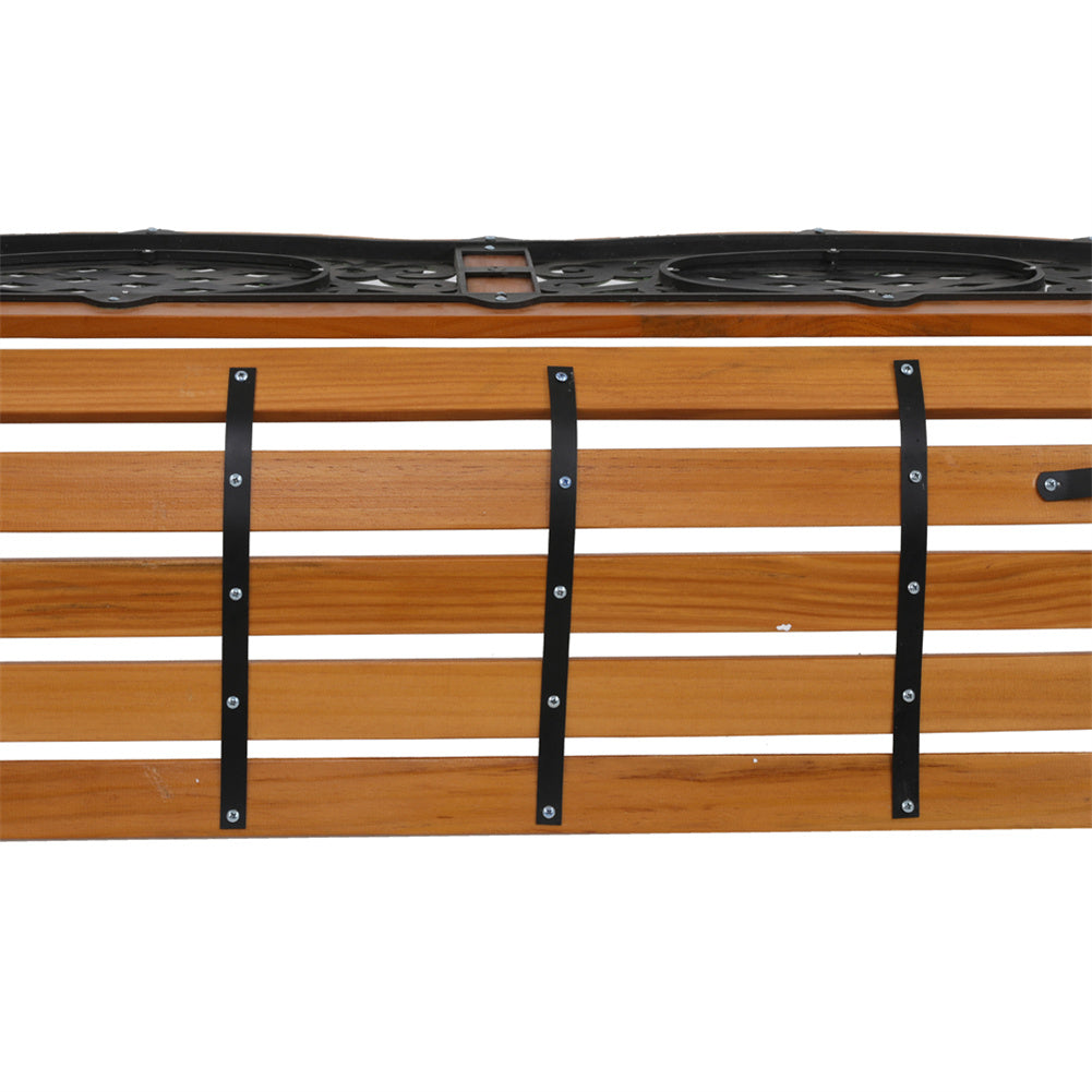 '--Powder coated steel construction and weathering hardwood for durability--The slatted seat with curved armrests provides optimum comfort--All finished edges are secure, no sharpe cuts, it won't hurt you or cut your clothes--Antique style back panel with very fine design--Perfect for any kinds of outdoor decoration--Easy to assemble, easy to clean with damp or dry cloth