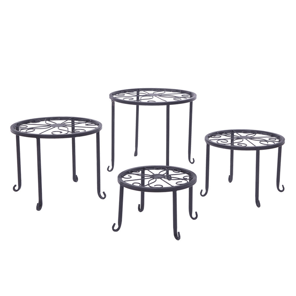 ALICIAN 4pcs/set Shelf Black Paint Round Pattern Plant Stand Household Organizer Black