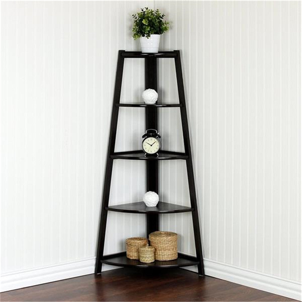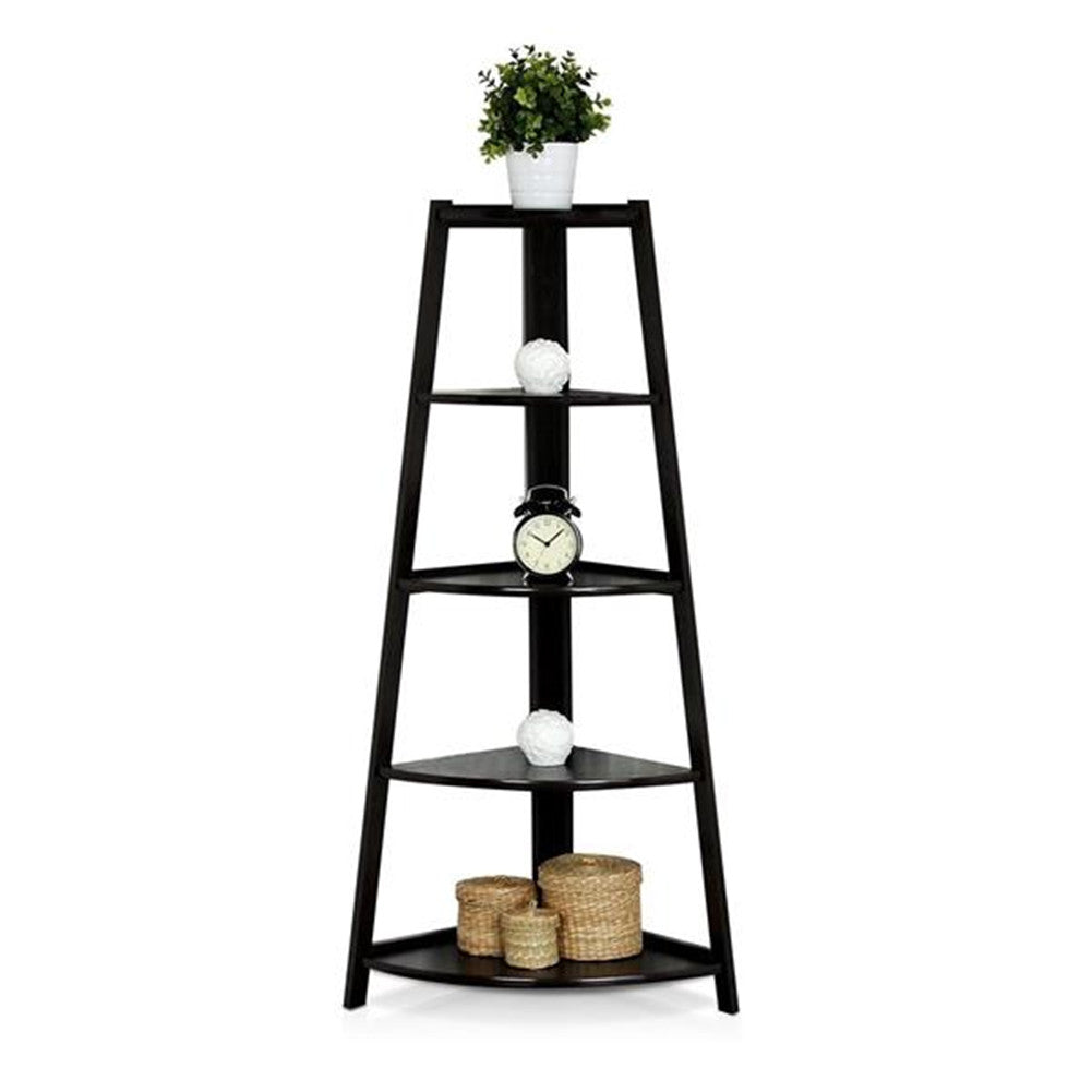 ALICIAN 5 Tier Corner Shelf Stand Wood Display Storage Home Furniture Rack Black