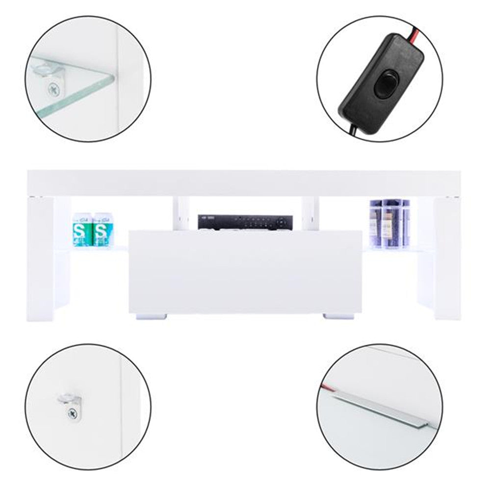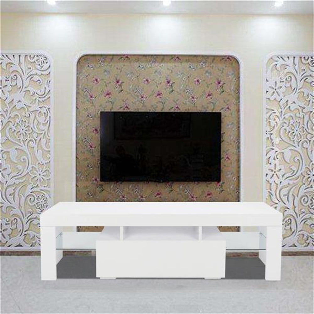 ALICIAN LED Cabinet TV White Particle Board TV Stand w/Single Drawer White