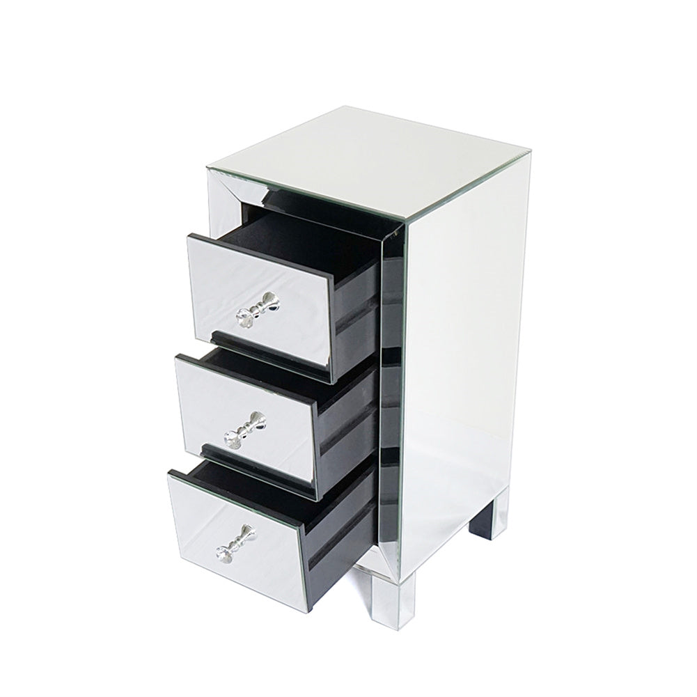 '--Made of high quality MDF and glass, environmentally friendly and durable--Simple design, easy to install--Three drawers design, can store and organize different things--Add sparkle to your bedroom--Provides an understated look while making the drawer easy to use--Dimensions: (11.81 x 11.81 x 23.62)¡±/ (30 x 30 x 60)cm(L x W x H)