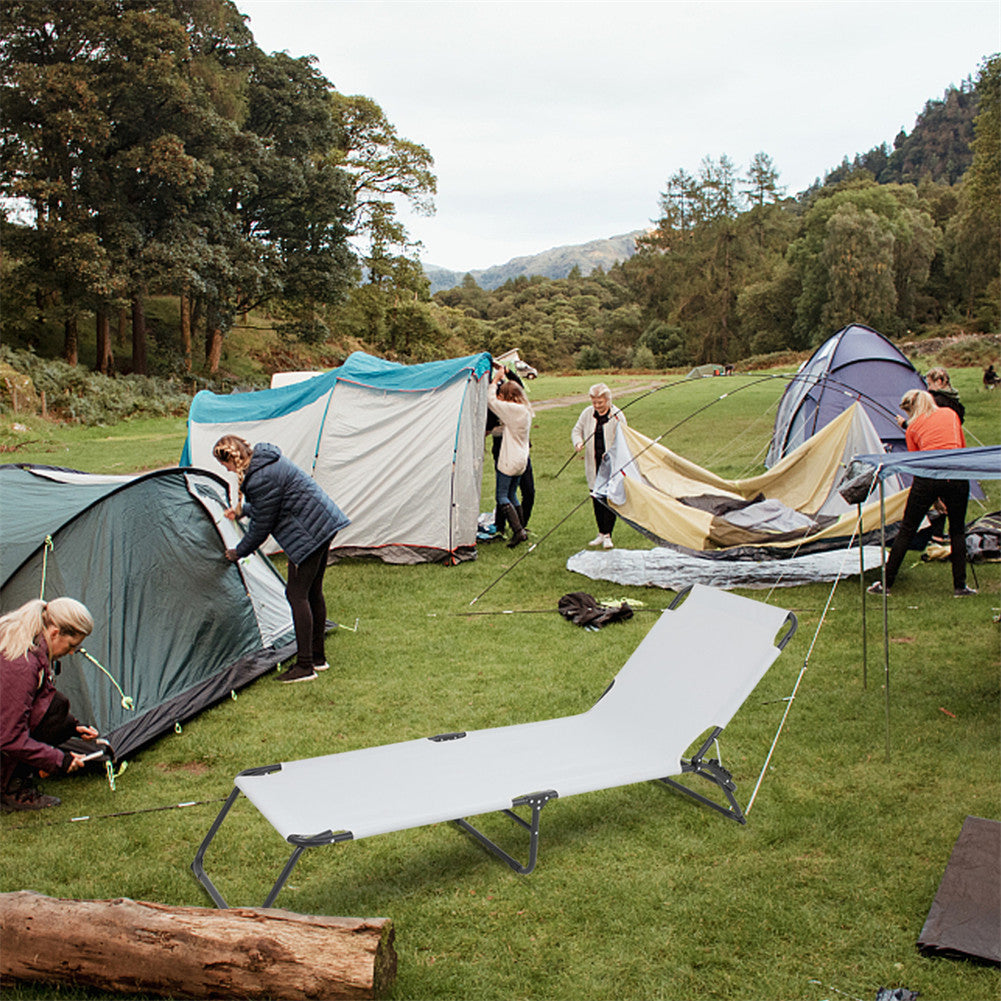 ALICIAN Outdoor Folding Three-fold Camping Bed for Courtyard Beach Reclining Lounger Grey