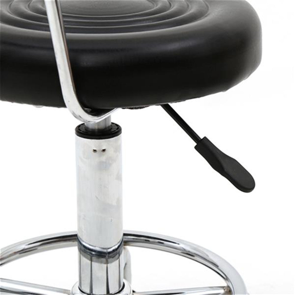 Are you looking for a high quality adjustable salon stool? Then this Round Shape Adjustable Salon Stool with Back and Line is an excellent choice for you! It is made of high quality PU leather & sponge & iron plating chrome material, durable and safe for your or your family use a long time. With a light weight and practical design, it is easy for you to move it. It also features anti-skidding and anti-rust design, so you can rest assured to buy it! You will feel satisfied!