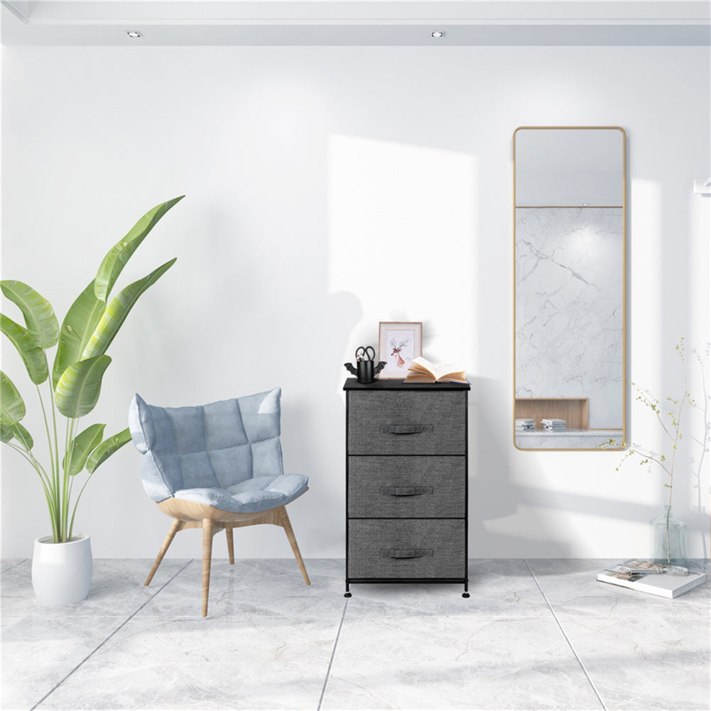 Give your household essentials a cozy landing spot with the 3-Drawer Dresser. This beautiful dresser chest features a tabletop surface and pull-out drawers to tuck away household clutter. The thoughtful design is great for small living spaces and works equally well near the bed or sofa. Organization enthusiasts will enjoy filling each drawer with clothing, linens, and knick-knicks from around the home. The lightweight frame makes this unit easy to transport and when not in use, simply fold the fabric drawers flat for storage. Use alone as a single unit or pair with any drawer configuration from the Furniture Collection.