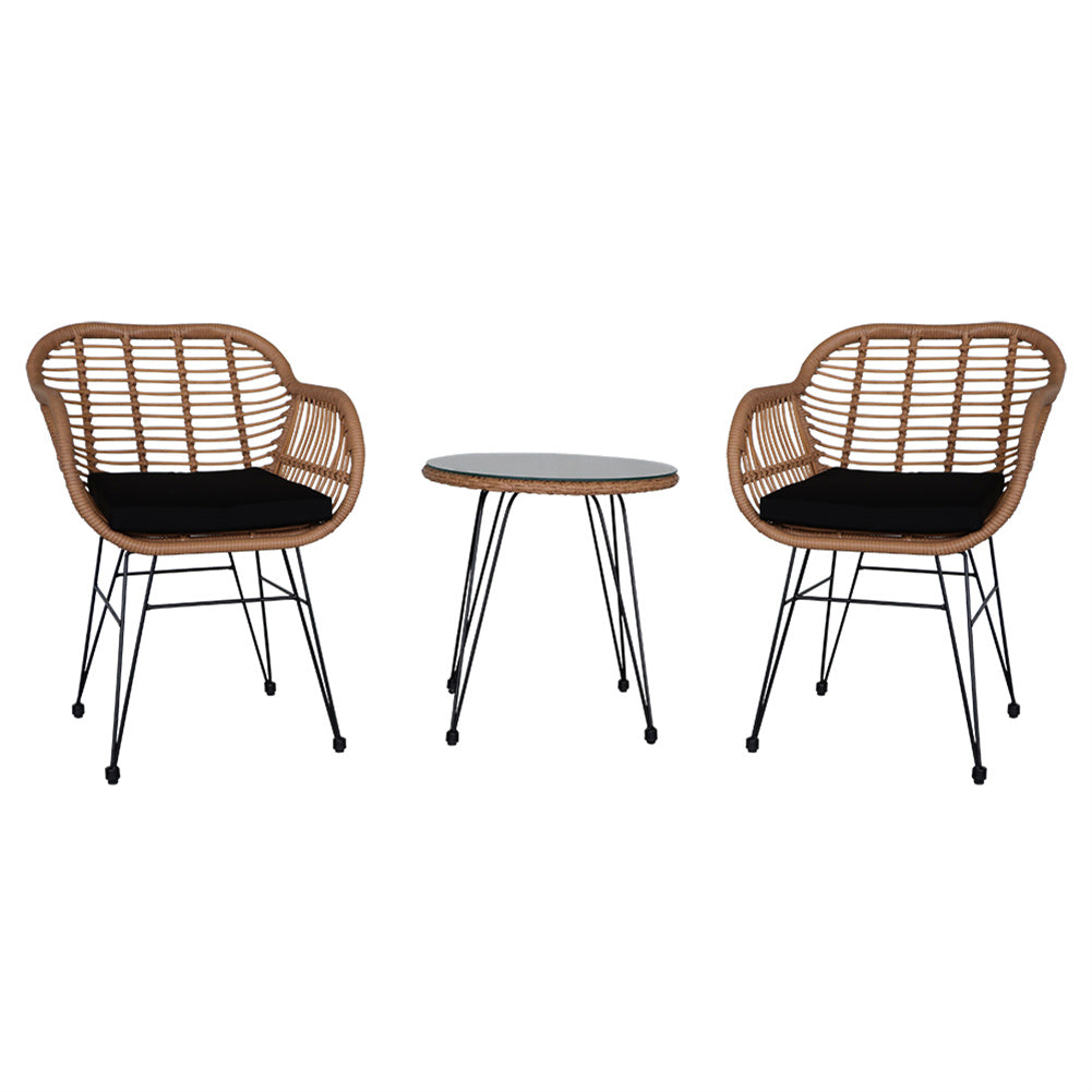 AMYOVE 3pcs Tempered Glass Table Chair Three-Piece Set Handwoven Wicker Rattan
