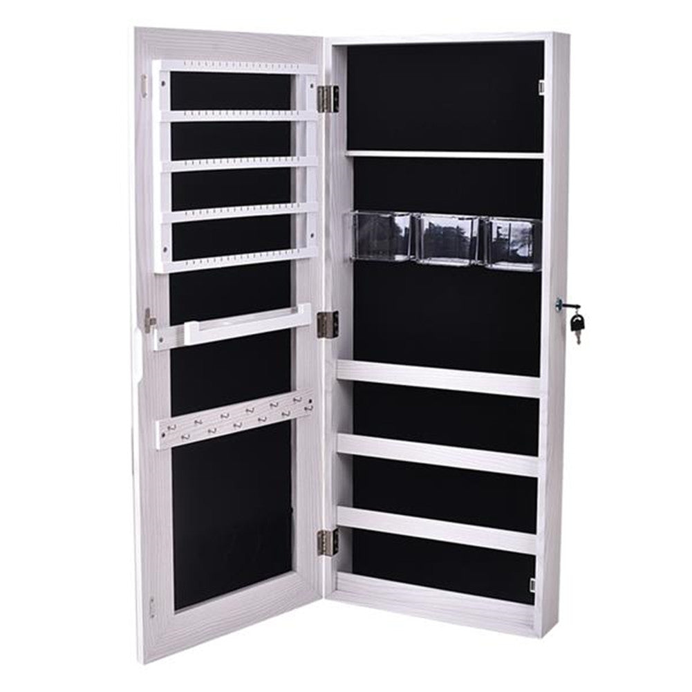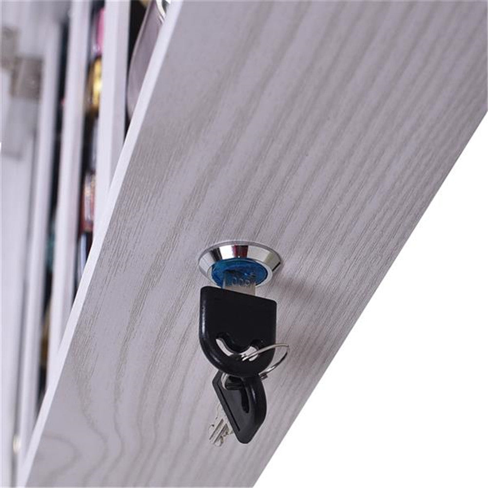 Every women dream of having a fashionable and practical mirror cabinet! Thus, The Whole Surface PVC Film Wall Hanging Door With Lock Jewelry Cabinet Fitting Mirror Cabinet becomes a necessary beauty tool. Made up with durable and reliable material, it can be used for a long time! It not only can be used as a mirror, but also is a useful storage rack! All of the internal space has a villous render; it feels soft and comfortable, and not easy to damage the ornament place in it! What are you still waiting for? Best choice for you!