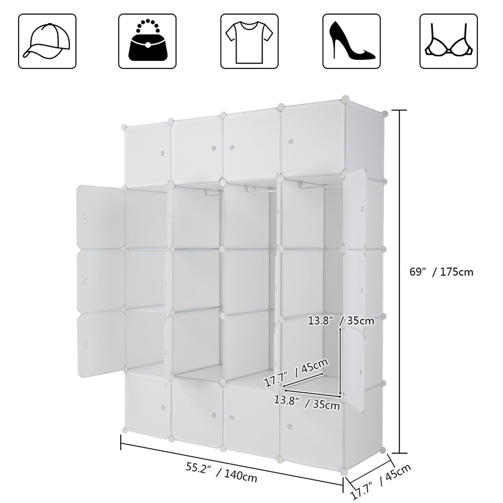 AMYOVE 5-layers 20-grids Modular Closet Cabinet Storage Shelves Cube Organizer White