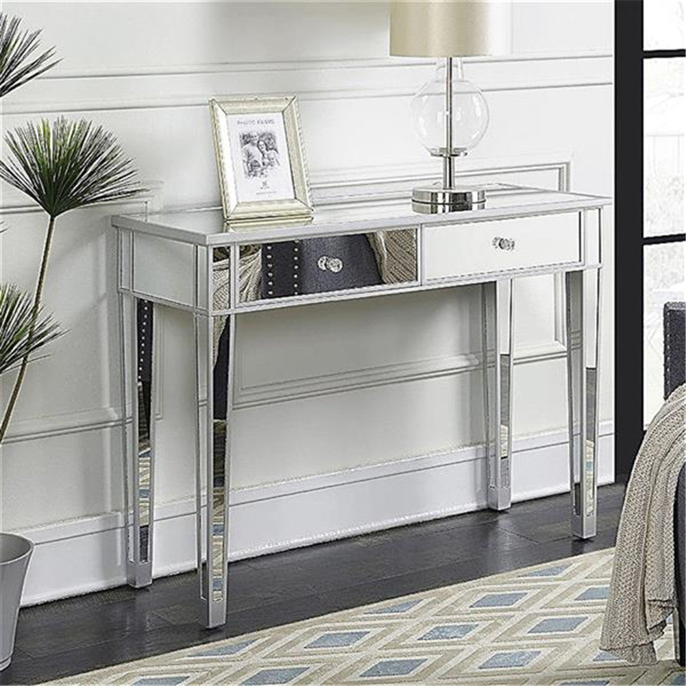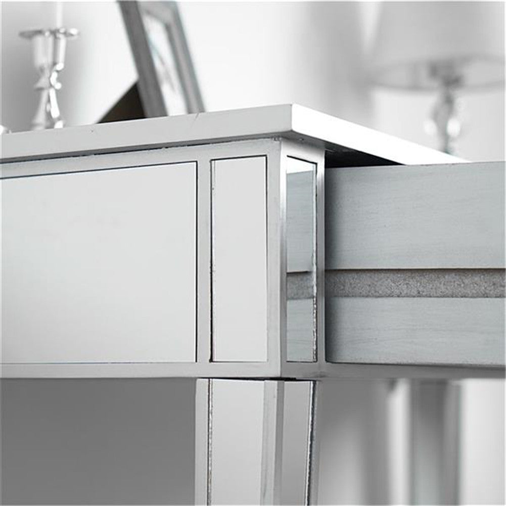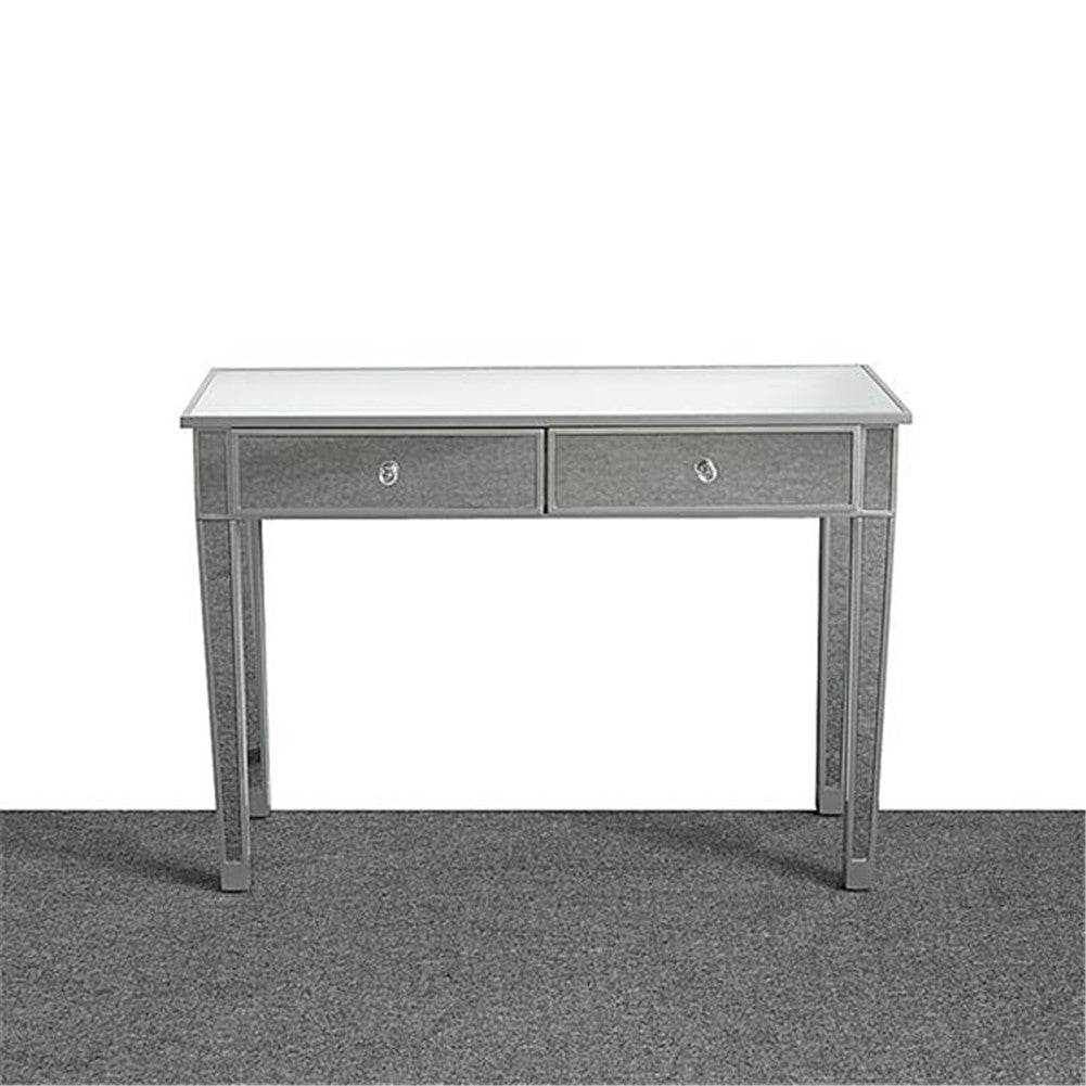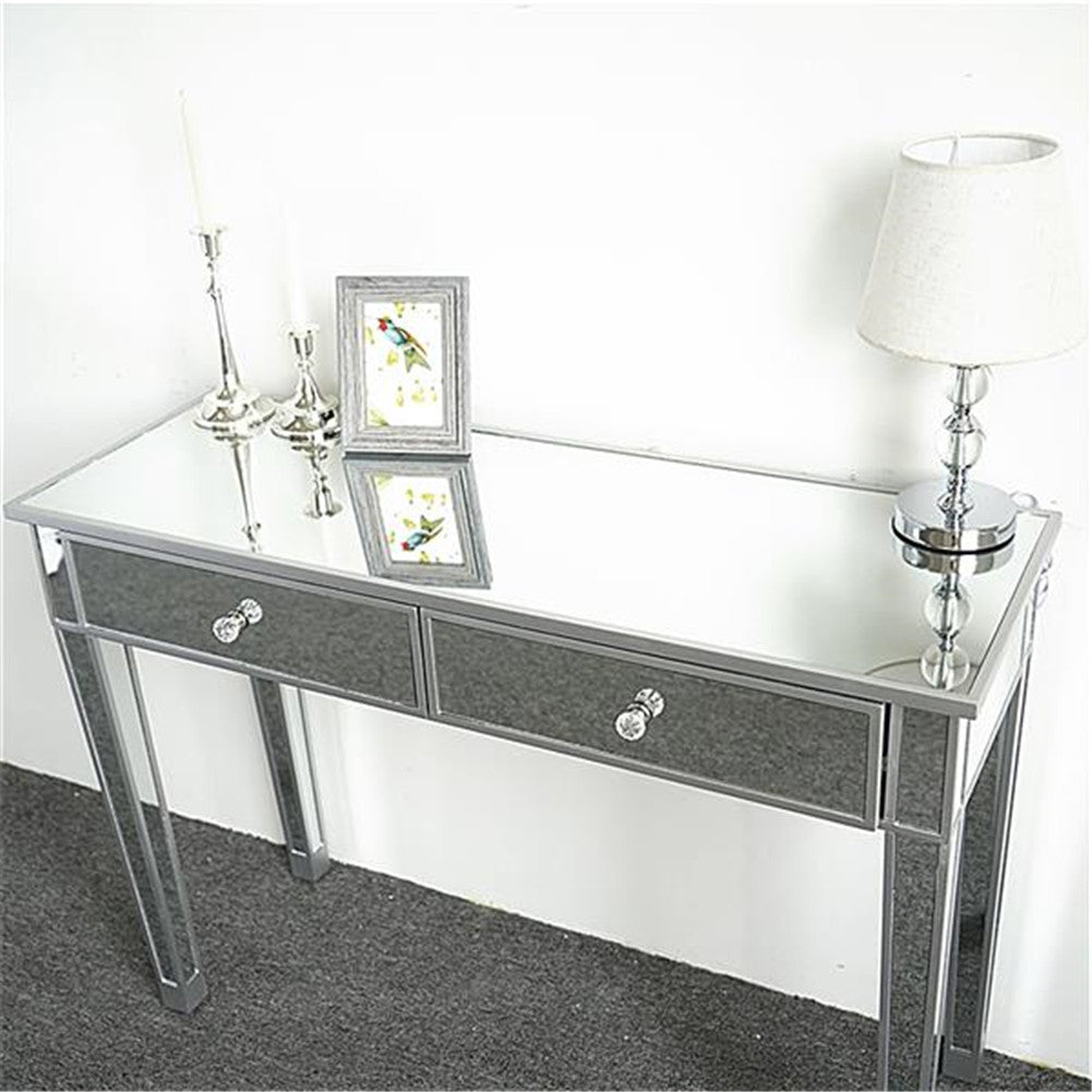 AMYOVE Dressing Table Bedroom Table Glass Mirror Table with Two Drawers Silver