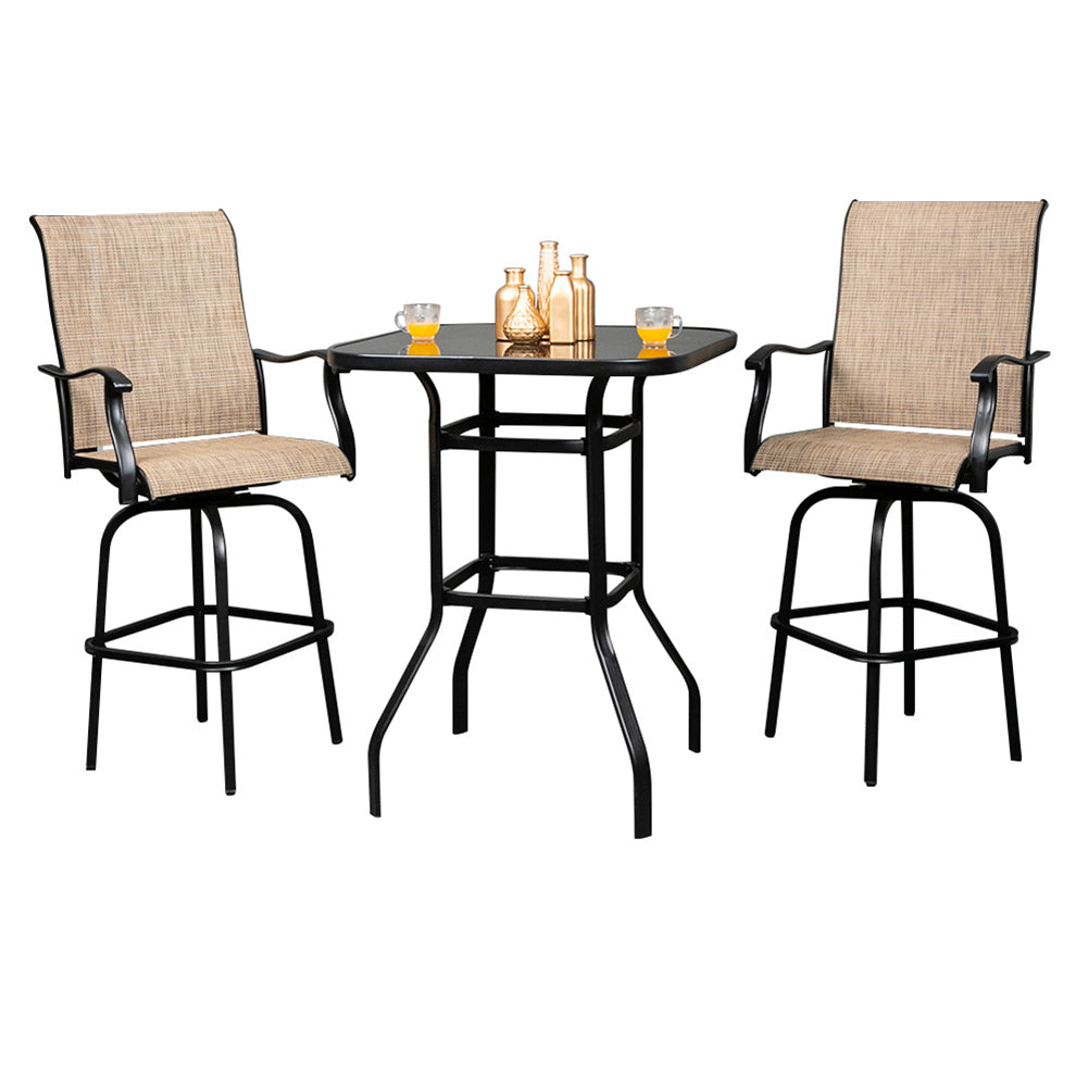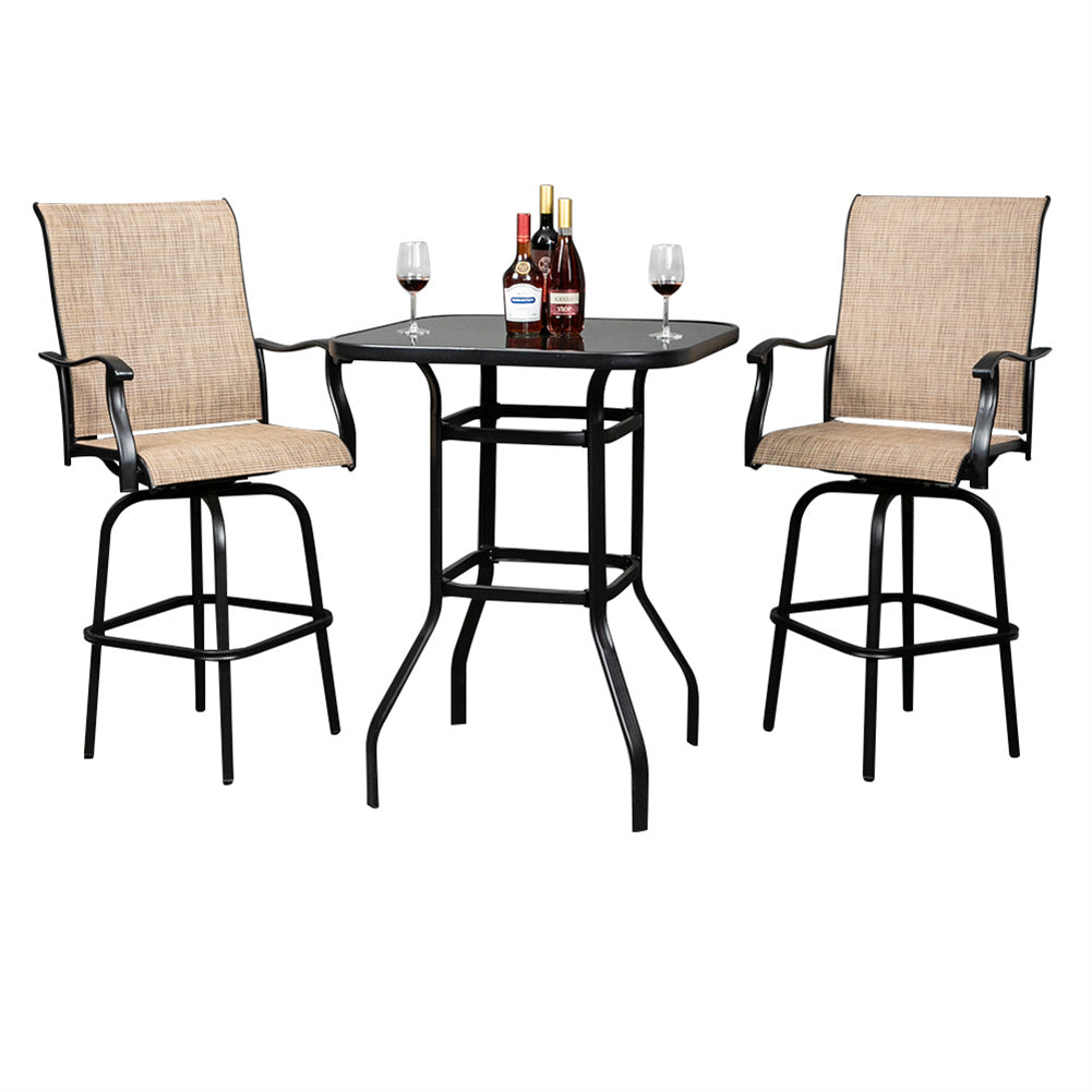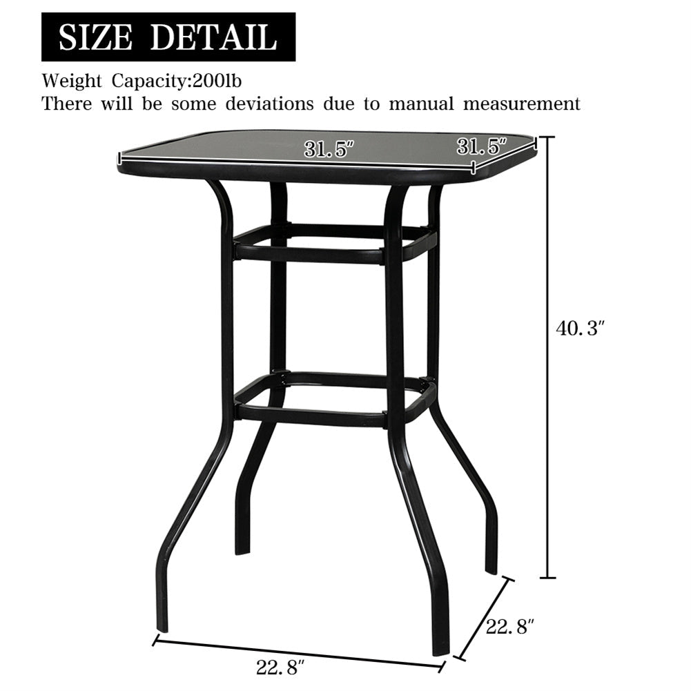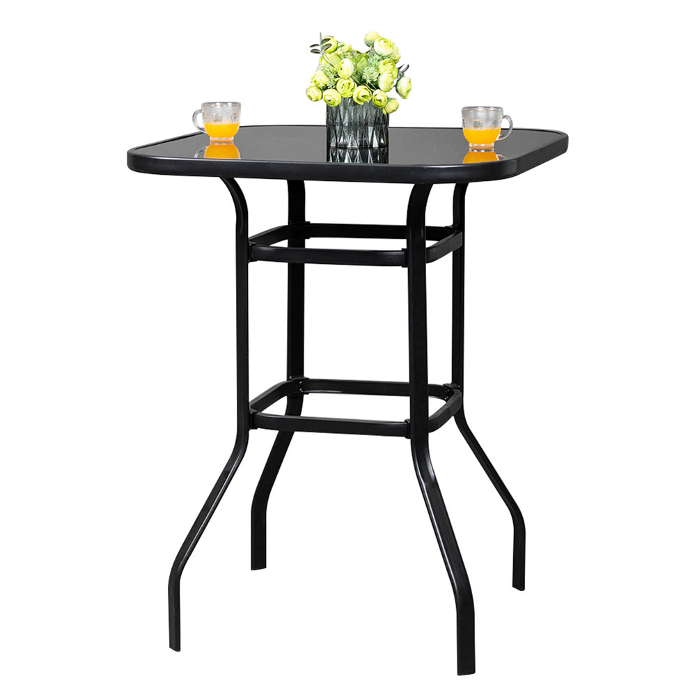 AMYOVE Iron Patio High Bar Table 5mm Tempered Glass Exquisite Workmanship Table