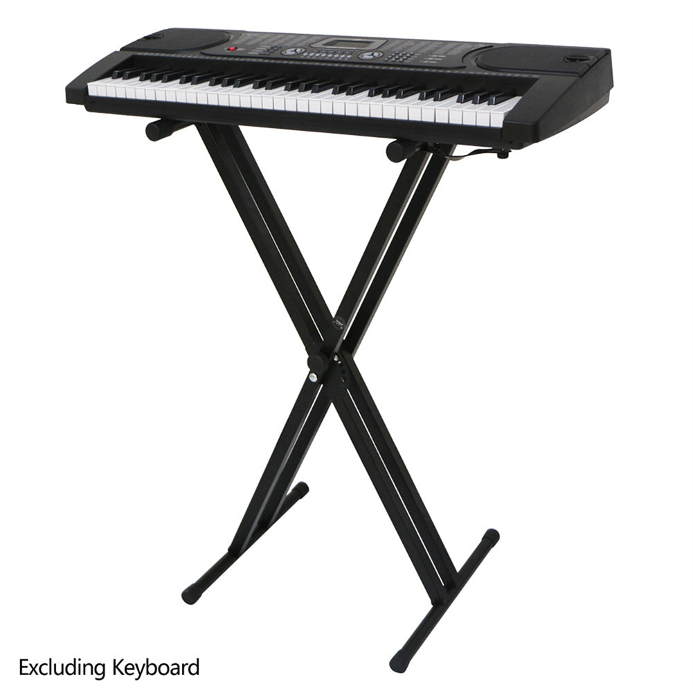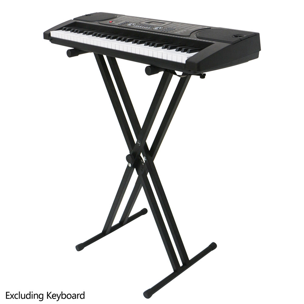 '--6 adjustable sizes, suitable for all keyboards.--Folds up for easy transportation.--Ideal for home use, church, display and performance.--Variable Height and Width Position.--Quick Lock Dual Support Keyboard Stand features heavy welds on large diameter tubes to ensure minimal wobble and years of reliable service.