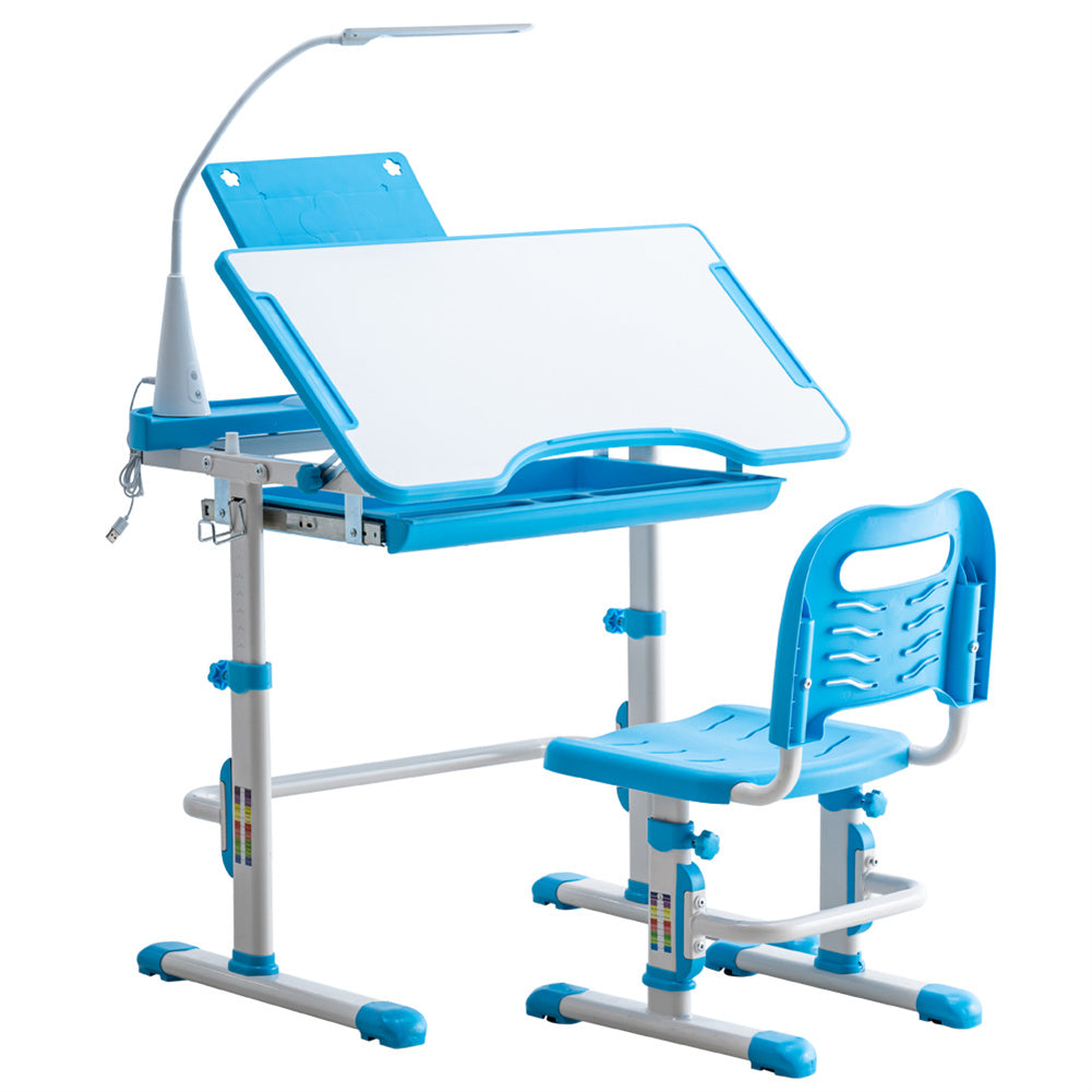 AMYOVE Kids Desk Chair Set Height Adjustable Student Study Desk Home Schooling Blue