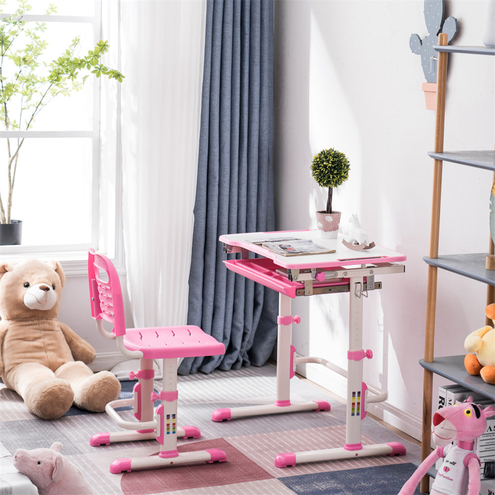 --Adjustable height: The height of the table and chair is adjustable, suitable for fast growing children. This ergonomic design helps your child to have the perfect sitting position for better comfort for your child