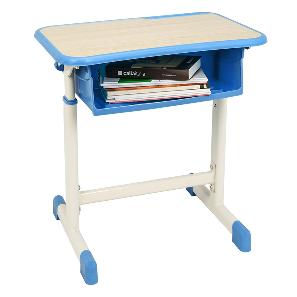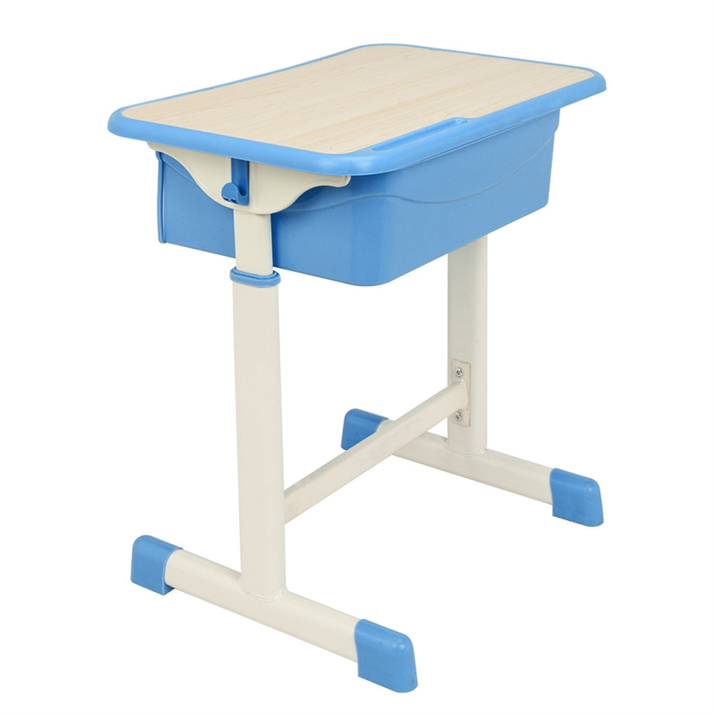 AMYOVE Student Table Chair Set Adjustable White Paint Wood Grain Surface Plastic Blue