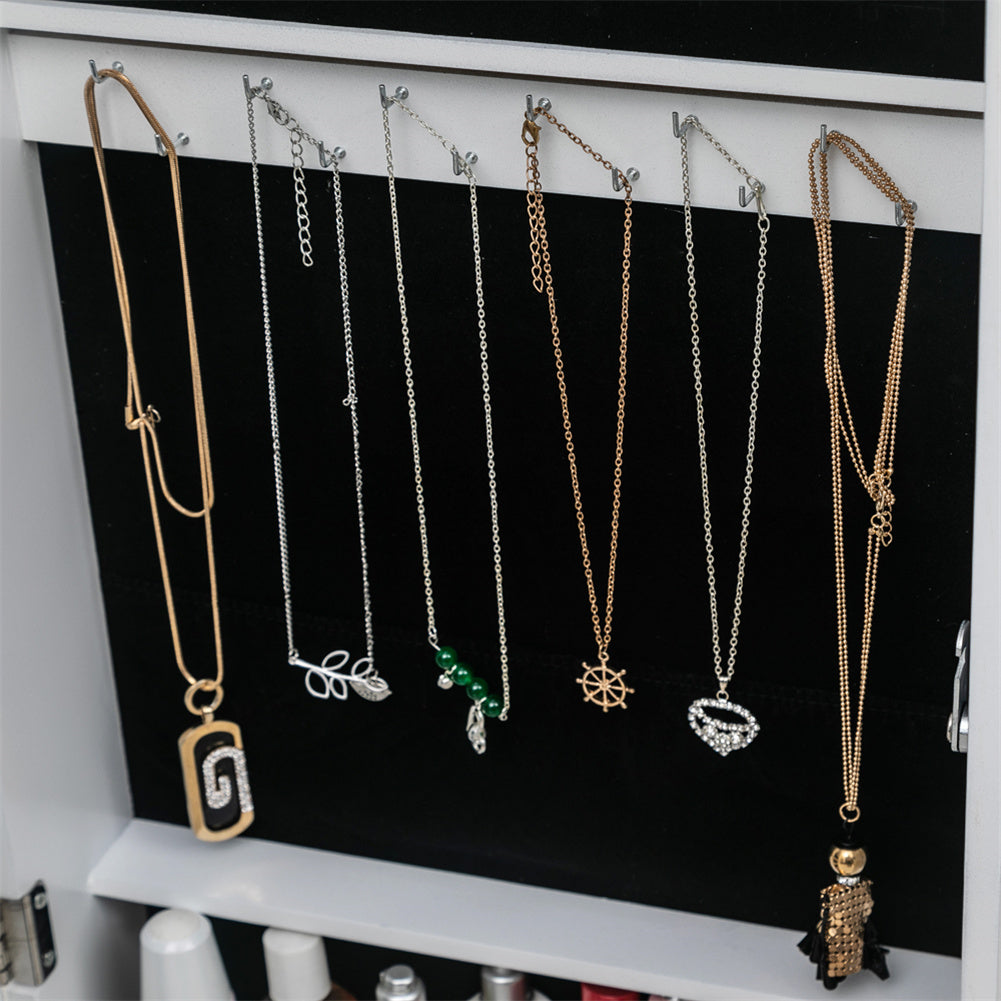 AMYOVE Wooden Jewelry Storage Mirror Cabinet Wall-Mounted Organizer - Brown