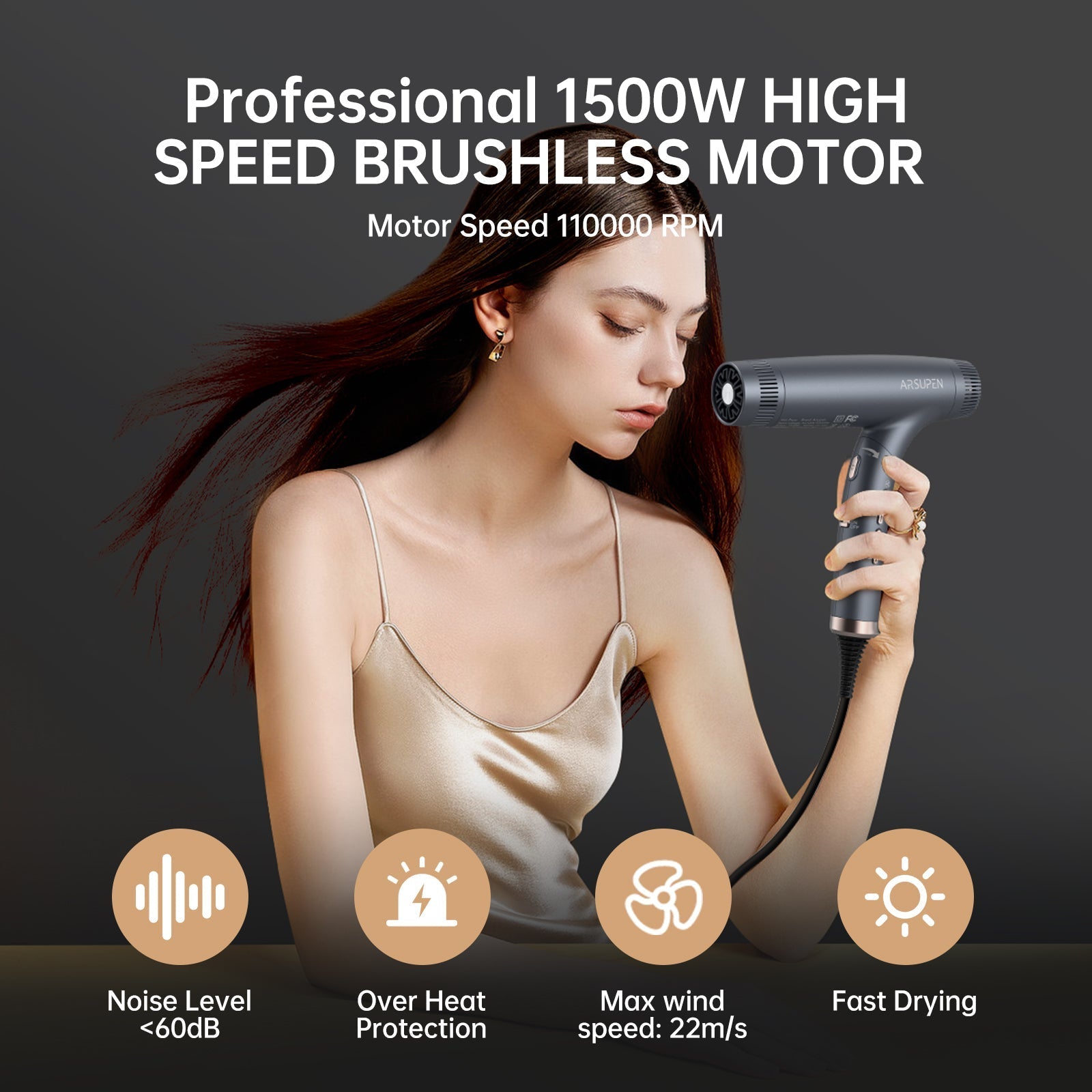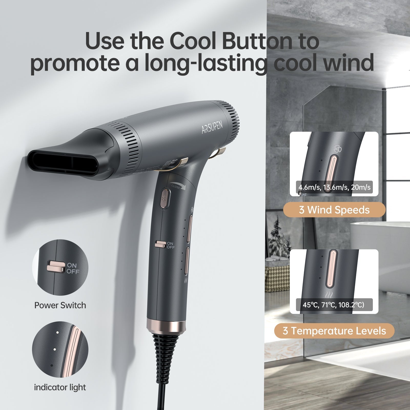 ARSUPEN Professional Hair Dryer Lightweight Foldable Dual Ionic Blow Dryer High Speed for Fast Drying