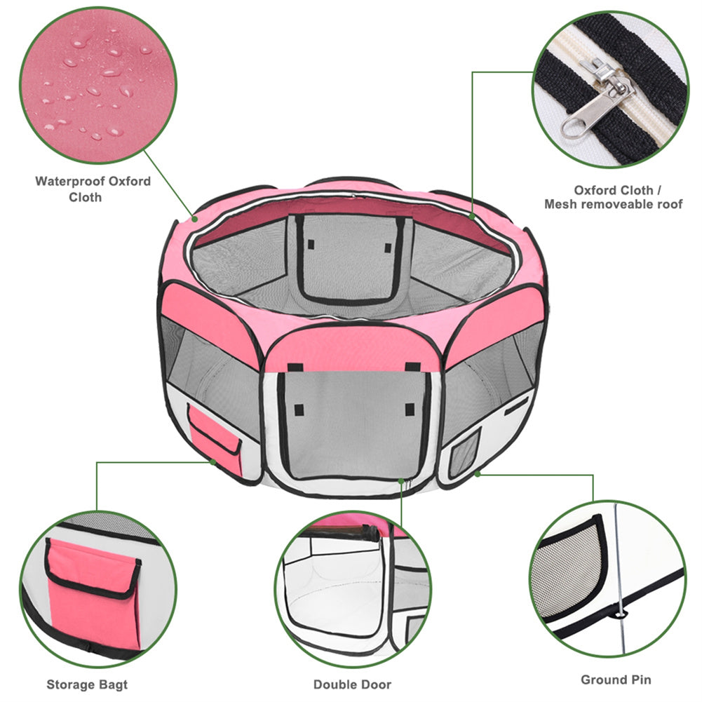 BEESCLOVER Pet Playpen 36 Inch Portable Foldable Fence Pink