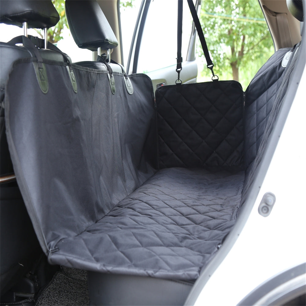 Made of waterproof oxford cloth, this heavy duty seat cover will protect your seat while providing comfort for your pet.--Heavy duty waterproof Oxford cloth fully covers and protects your back seat from dust, hair, scratches, etc.--Seat belt opening with magic stickers closure--Adjustable headrest straps with quick release clips allow for quick and easy installation. The straps are also UV-coated to ensure they won't be damaged by the sun.--Dimensions: 54"W x 58"L