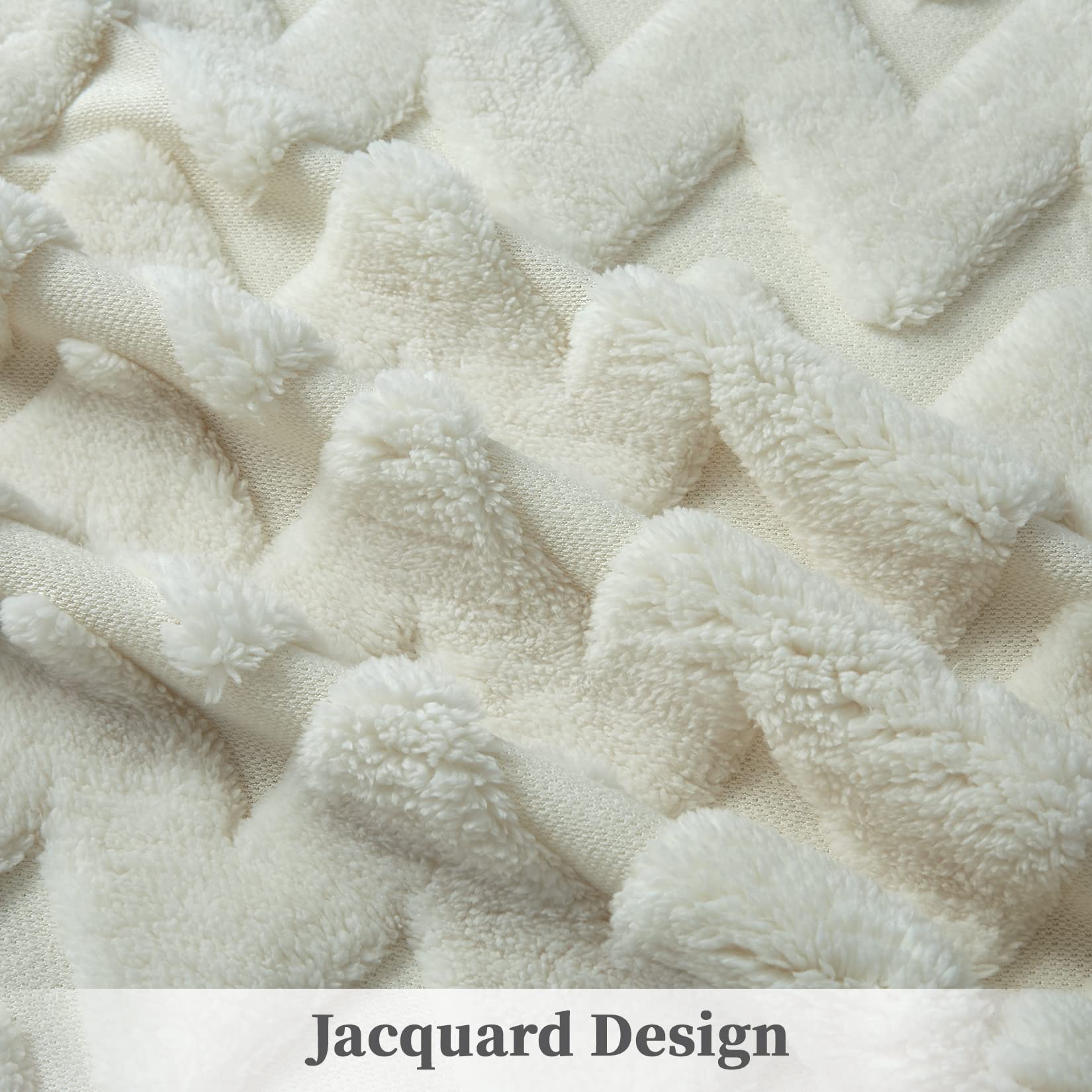 CAROMIO Sherpa Fleece Soft Plush Jacquard Fluffy Throw Blanket Creamy White 60 inch x 80 inch