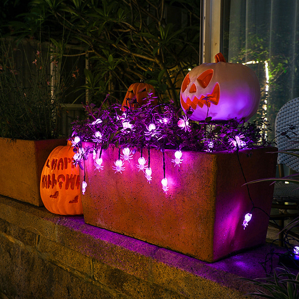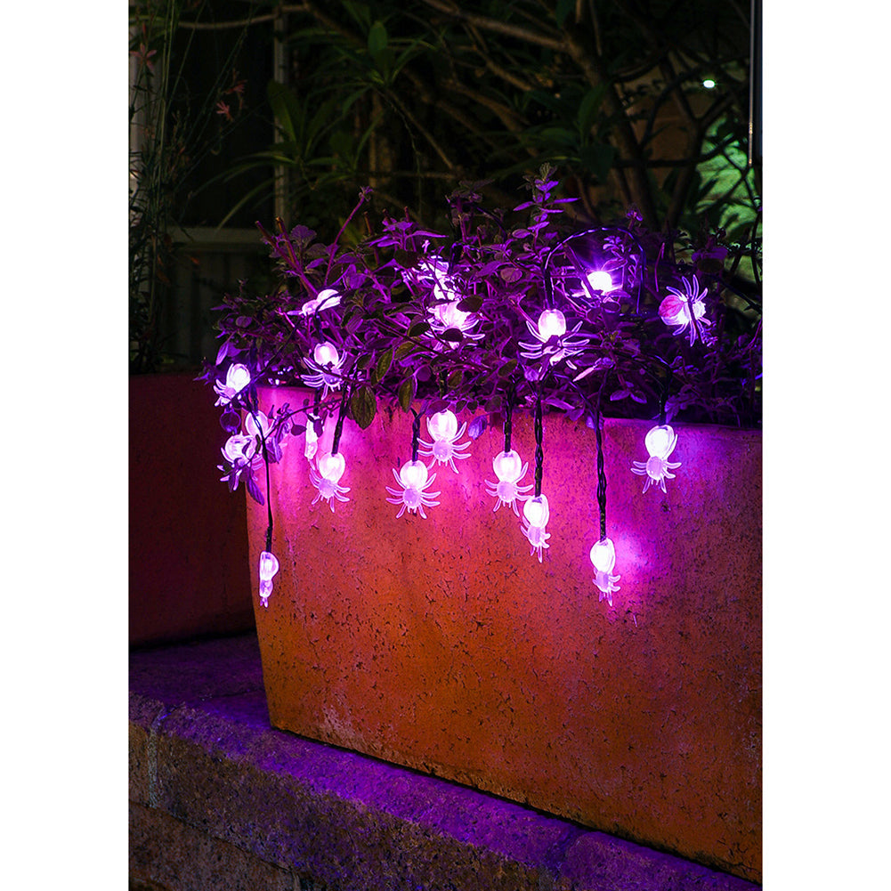 Purple Halloween lights: This string of purple lights illuminates your house, porch, front road or yard in the shape of a charming little spider.