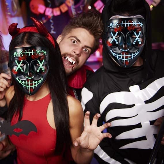EYE-CATCHING DESIGN---Halloween light up masks are a conversation starter with eye-catching appearance, and will make sure you stand out of the crowd. Regardless of where you are you'll be getting tons of attention from others who are curious about your mask. Fun for all ages.