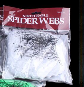 The product comes with an ultra-stretchable spider web and 24pcs black spiders.