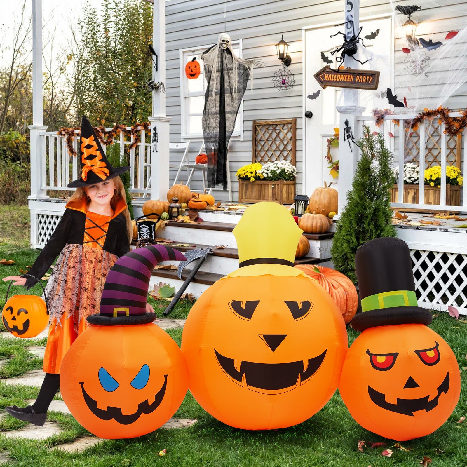 Great for Festival:Pumpkin Combo with wizard hat inflatable are made of high strength waterproof polyester which is against rips and tears, the excellent stitching improves the durability of the inflatable decoration. In addition, this outdoor inflatable is providing with a powerful-duty blower to continuous airflow inflate the decoration, it also come with a storage bag for you.