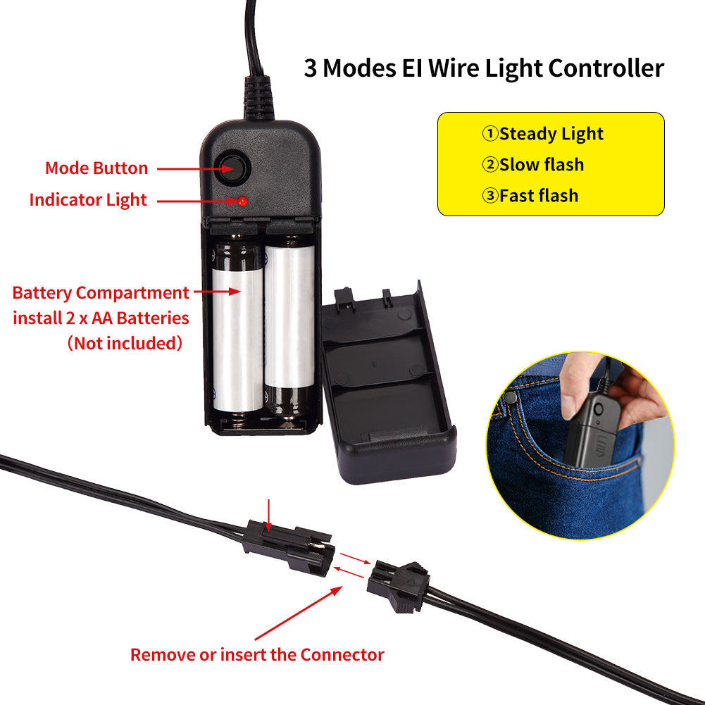 MULTIPLE MODES : The light up purge mask control have 3 lighting modes: Steady Light, Slow flash, Fast flash. Costume rave mask requires 2 * AA batteries (Not included) . PORTABLE: There is a clip with controller, you can clip it on the pocket or clothes when go out, easy to take it and use it.