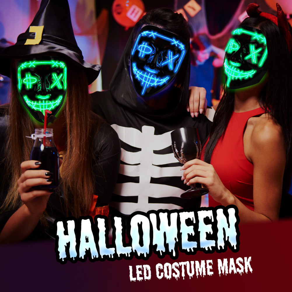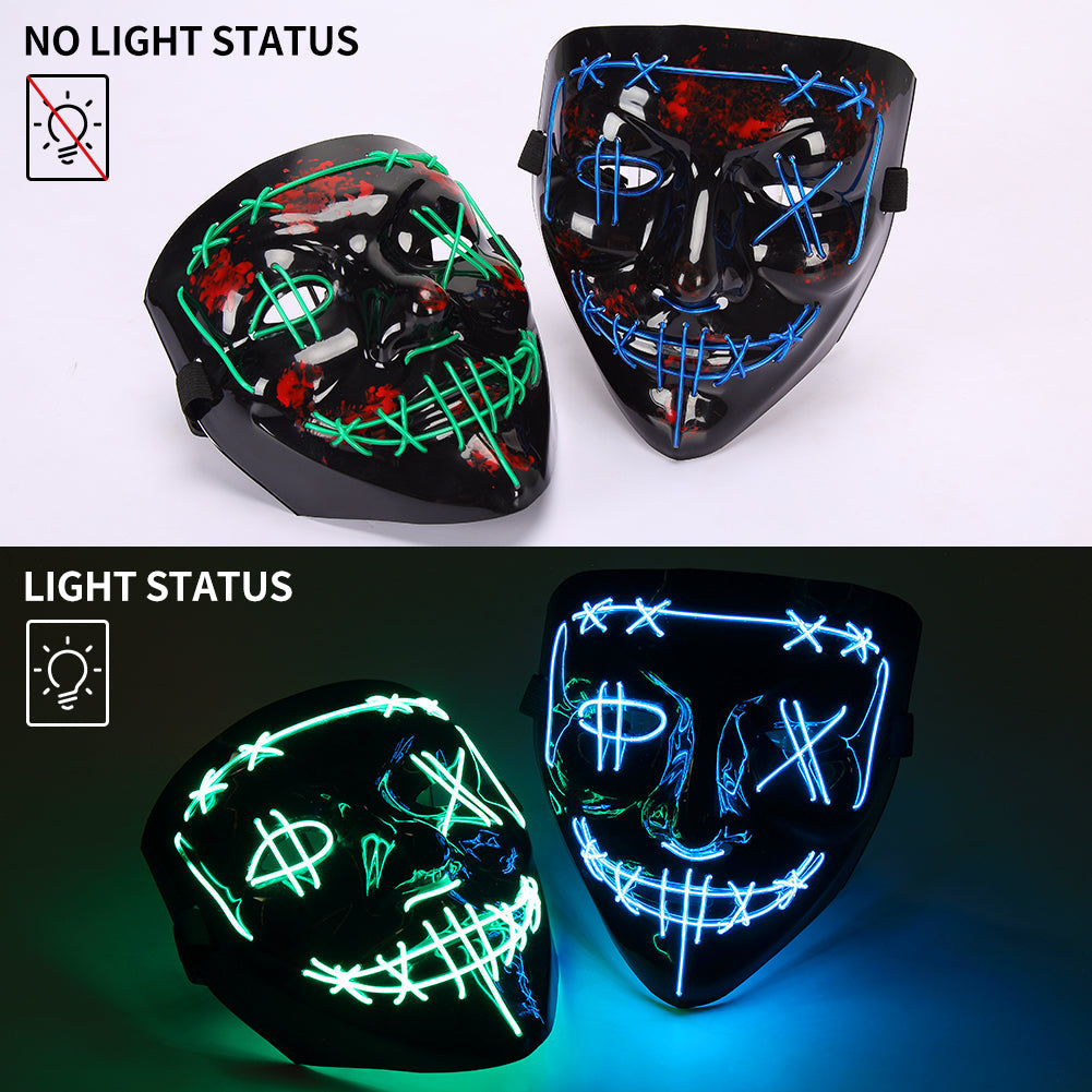SUPERIOR MATERIAL AND COMFORTABLE: Flashing Halloween mask is made of high quality PVC and EL cold light.The light is soft, no ultraviolet ray damage, and it won't cause damage to your eyes. No inferior plastic smell, no pungent smell, can be worn with peace of mind.
