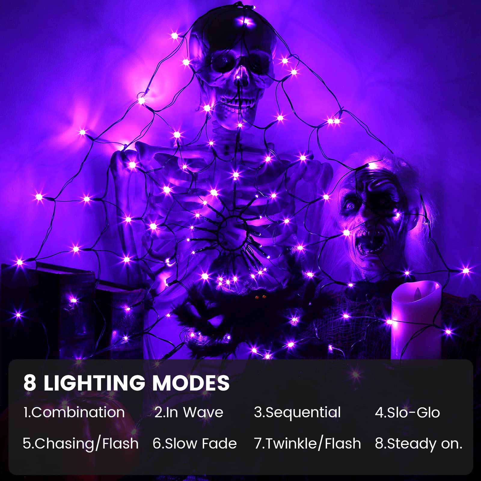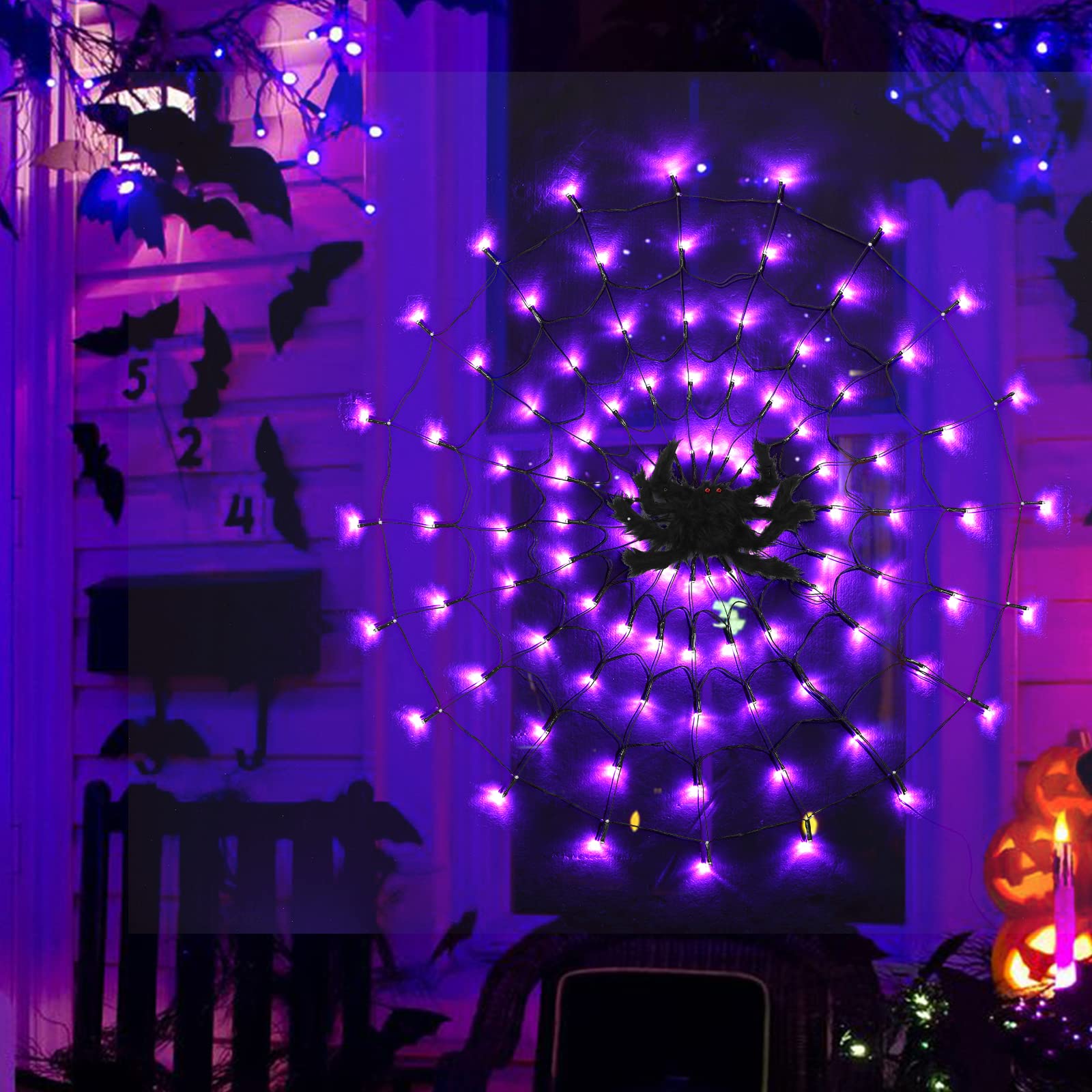 CYNDIE Halloween Purple Spider Web Lights Waterproof