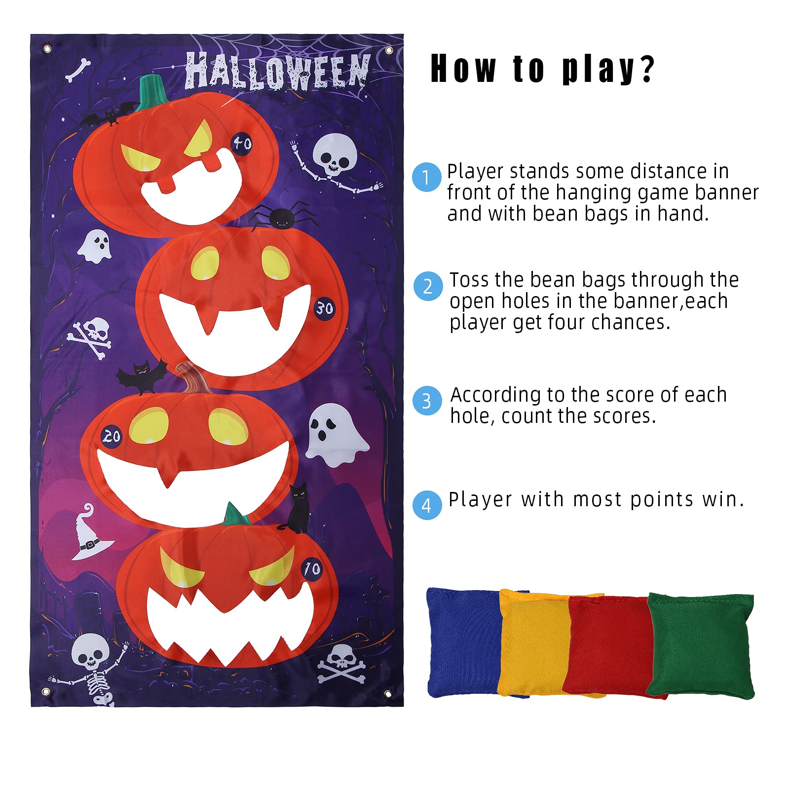 Halloween Toss Game Banner with 4 Bean Bags,Dark Ghost and Pumpkin Bean Bag Party Games,Indoor and Outdoor Bean Bag Toss Game,Halloween Party Game-Birthday Party Decorations for Kids and Adults
