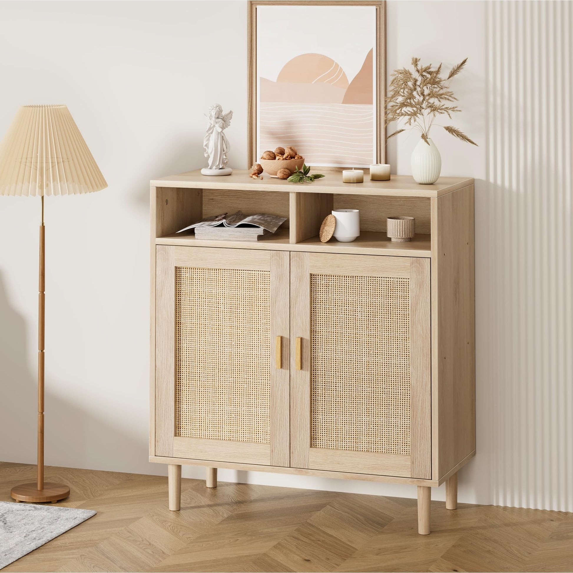 GAOMON Sideboard Buffet Cabinet, Rattan, 2 Doors, Modern Coffee Bar Cabinet, Natural Oak, 36''H, Kitchen Dining Room Entryway