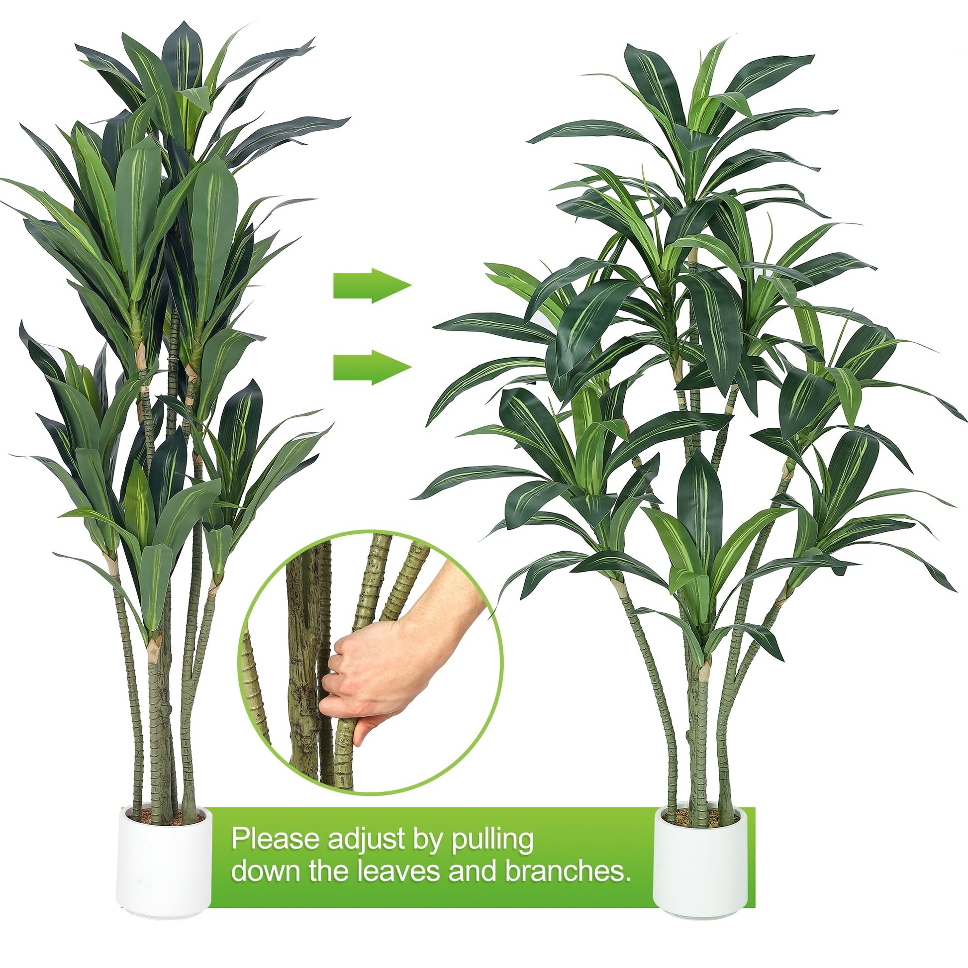 - PREMIUM AND ADJUSTABLE - To prevent the fake plants for losing their natural color, the trunk and leaves of this artificial dracaena tree are used premium material to achieve the best decorative effect. Lifelike leaves are free detachable and outfitted with sturdy inner metal wires, easy to adjust to the shape you like. Simply wipe clean with a damp cloth
