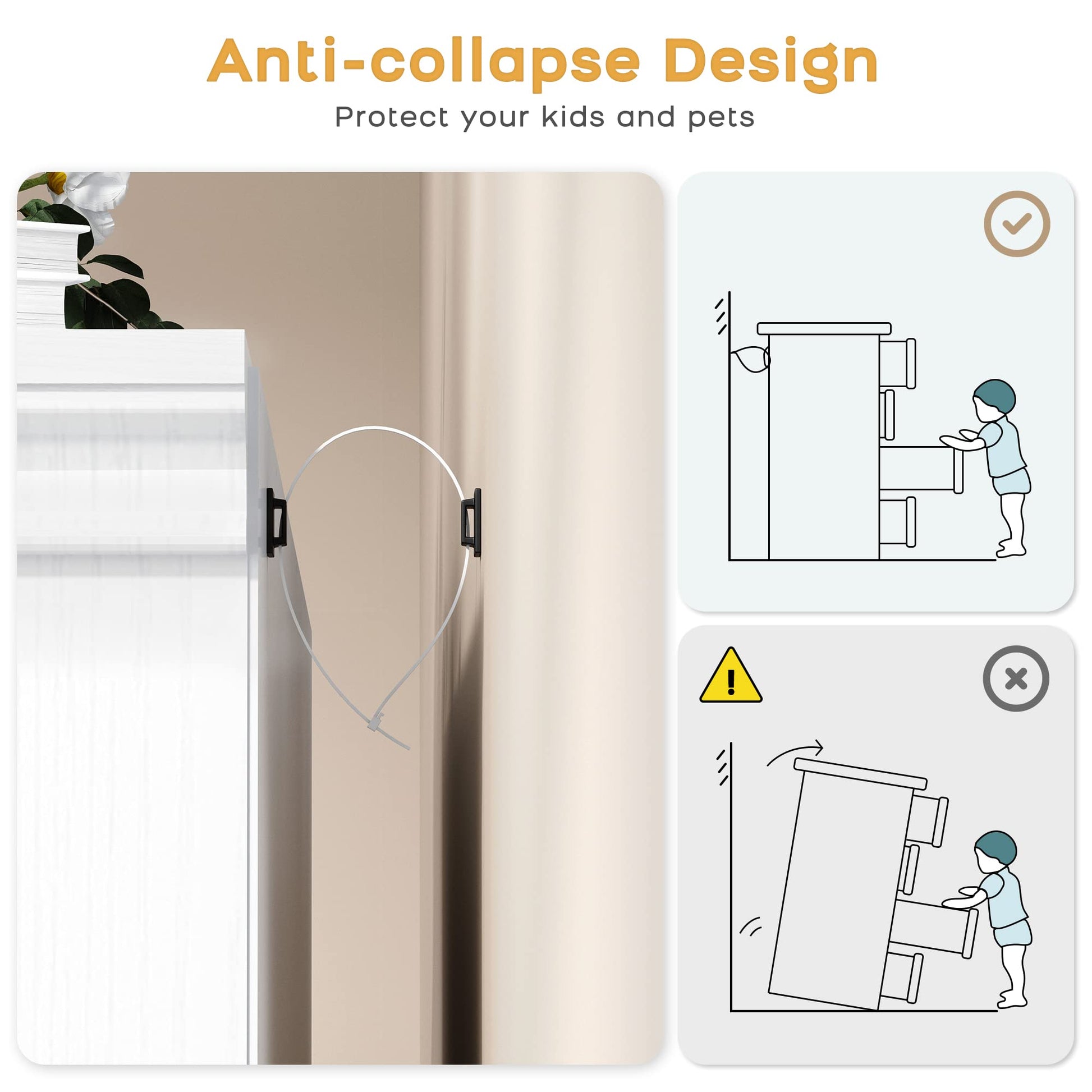 - ¡¾Safe and Functional Design¡¿Prioritizing safety and ease of use, our dresser includes an external anti-tip device for added stability during use. Equipped with smooth slide rails, the drawers glide open and close quietly, providing effortless access to your items. Designed for perfect alignment, these slide rails ensure that drawers stay on track, enhancing your overall experience.