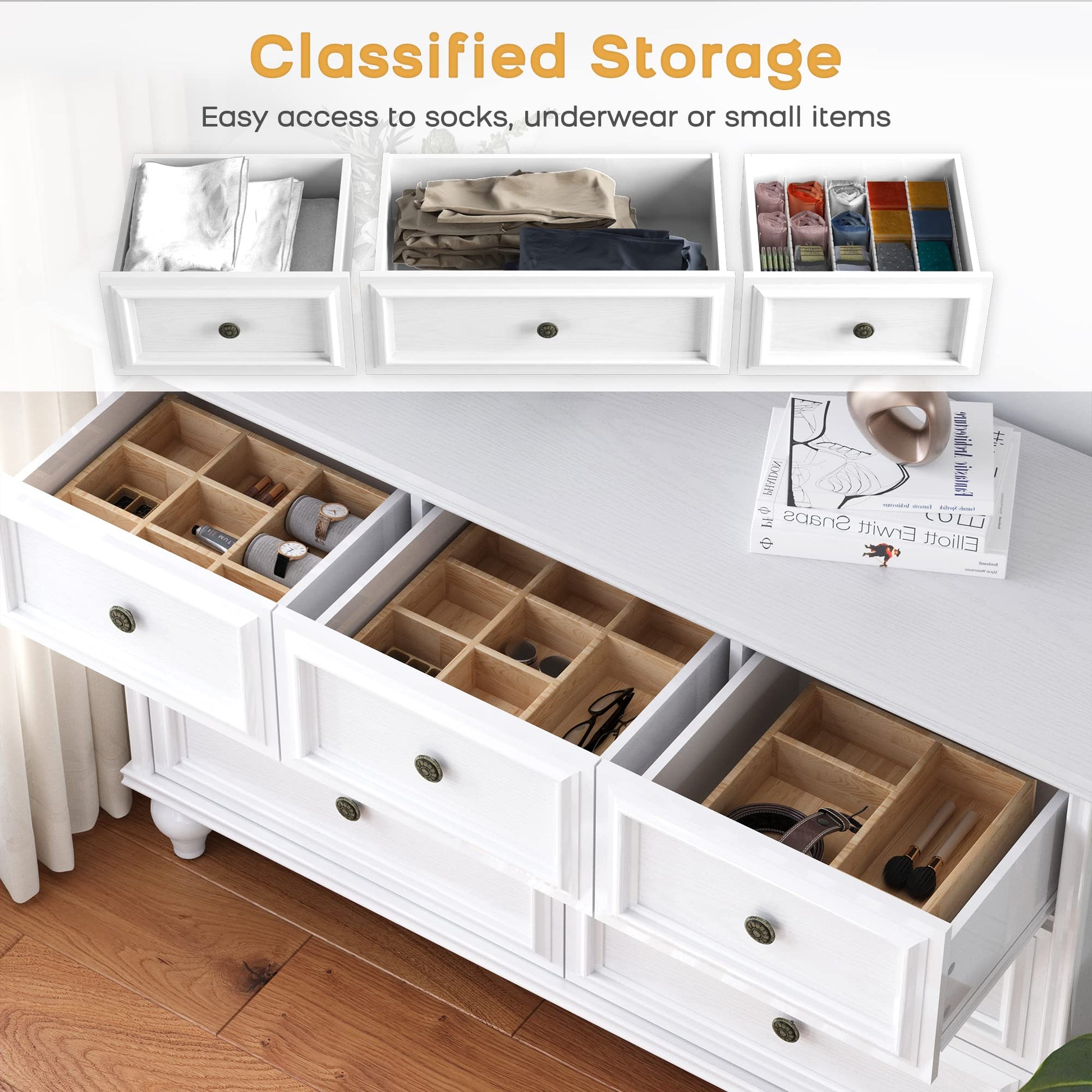 - ¡¾Versatile and Elegant Design¡¿Transform your space with our stylish wide dresser, designed to bring a touch of elegance to any room. Its contemporary aesthetic seamlessly complements a variety of decor styles, making it a wonderful addition to your bedroom, living room, hallway, or entryway. Enhance your home with a piece that reflects your unique taste while providing functional storage.