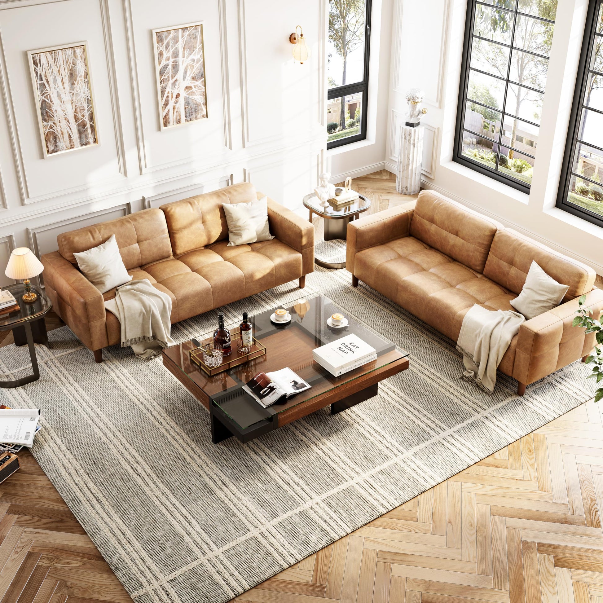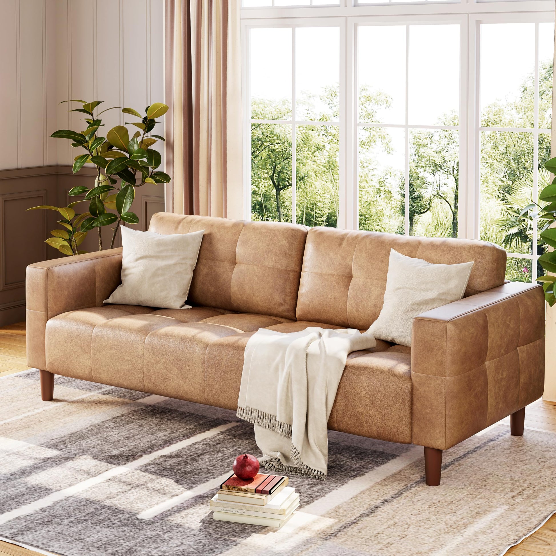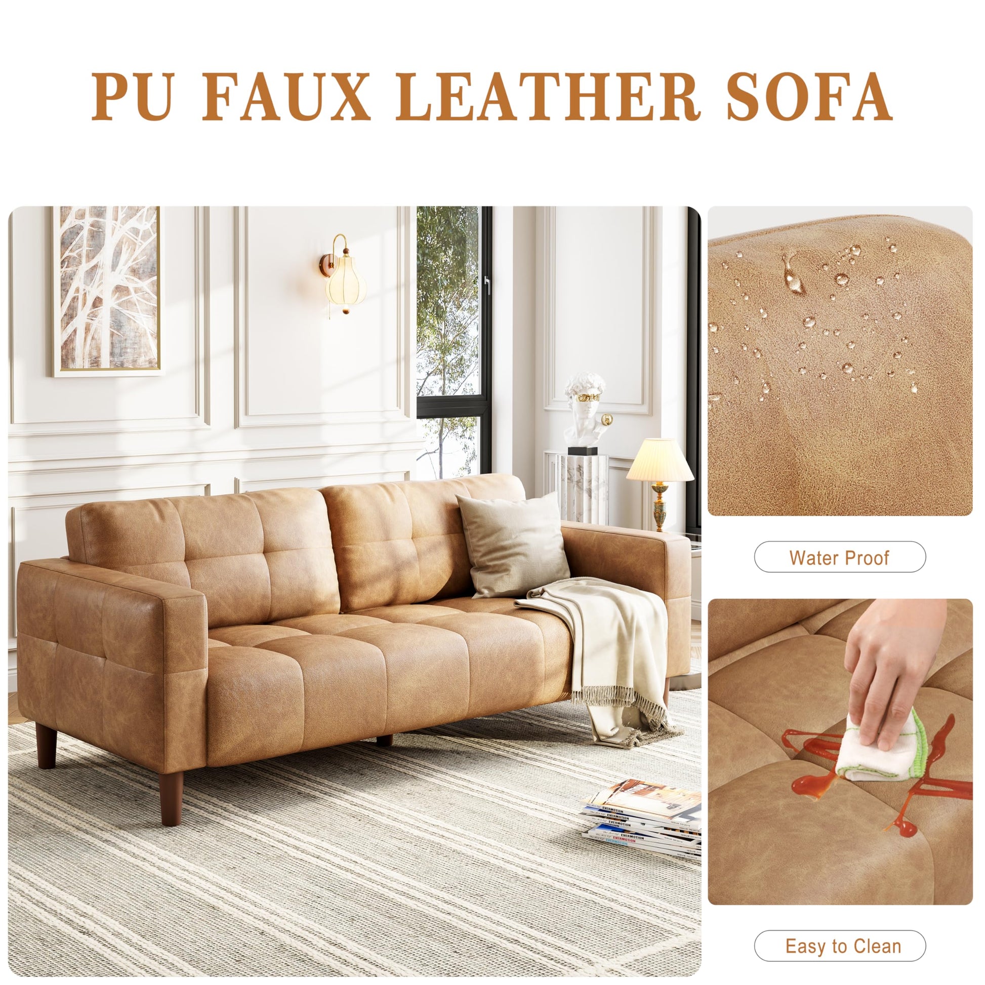 - ¡¾Easy Care and Maintenance¡¿Keeping your leather sofa pristine is easy¡ªjust wipe away stains and dust with a soft damp cloth to ensure your living room couch remains clean and inviting with minimal effort, allowing you to enjoy the beauty of the sofa